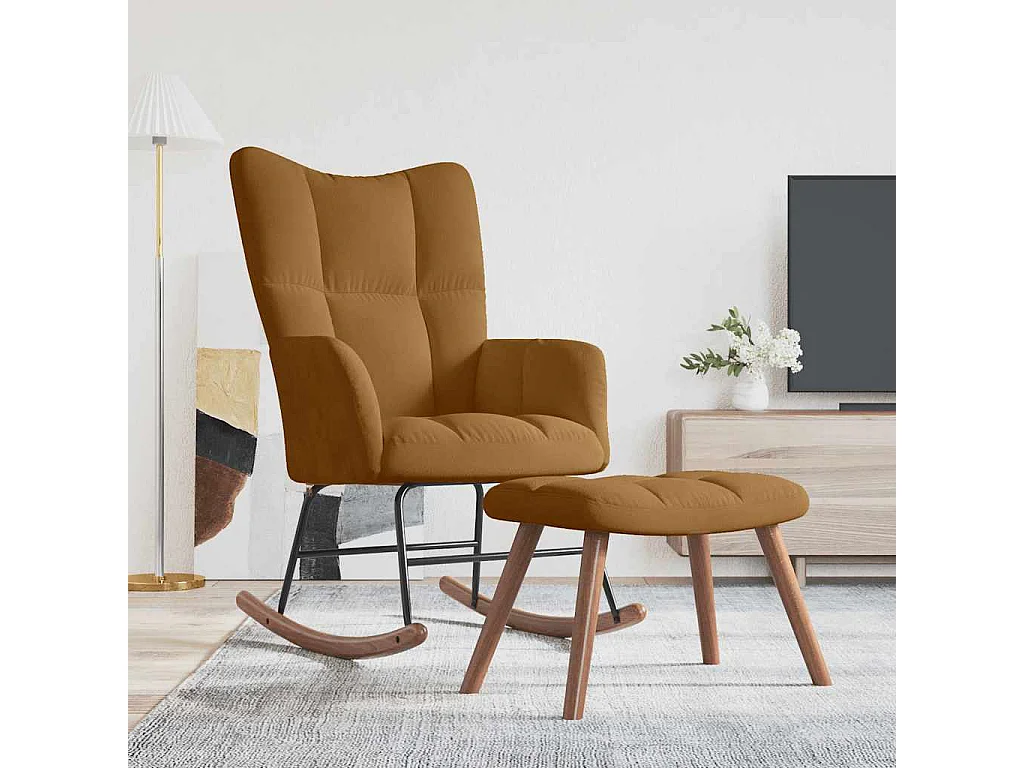 Schaukelstuhl mit Hocker Brauner Samt