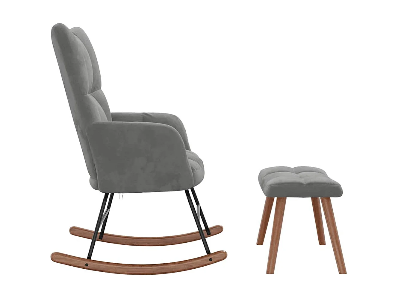 Schaukelstuhl mit Hocker Hellgrau Samt