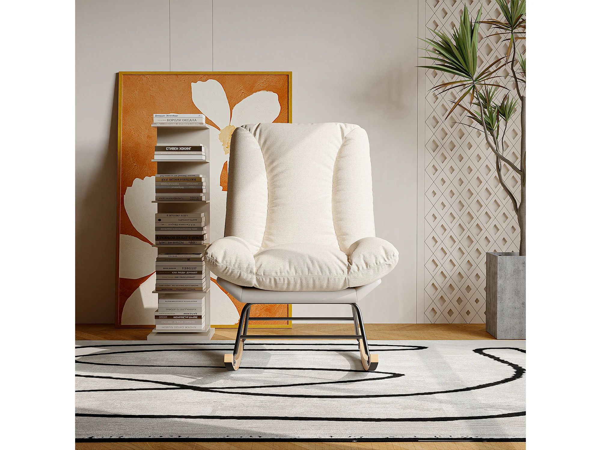 Schaukelstuhl aus cremefarbenem Stoff