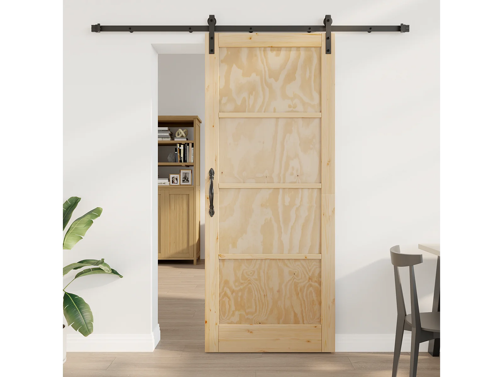 Schiebetür mit Beschlagsatz 86x211 cm aus massivem Kiefernholz