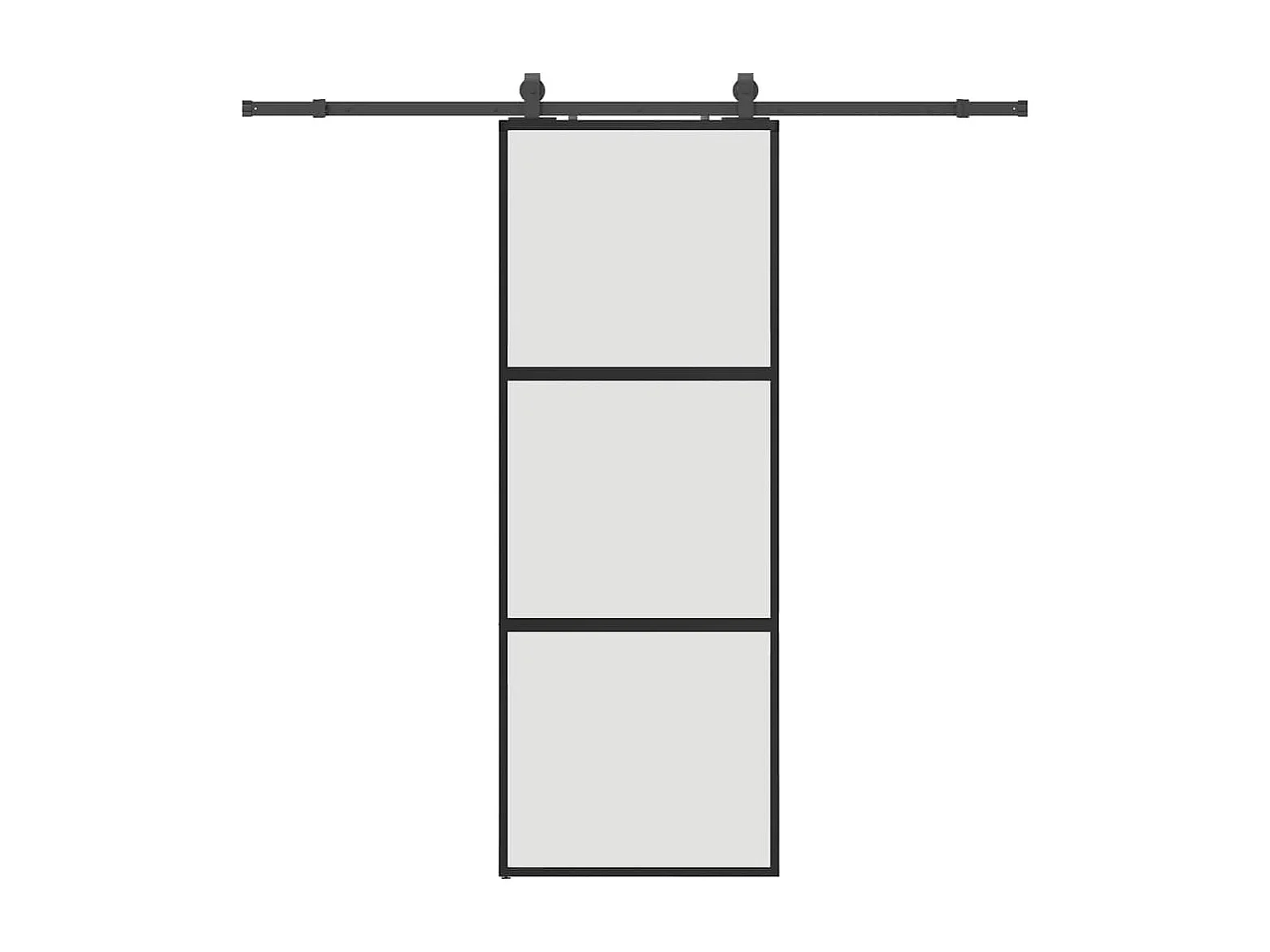 Schiebetürbeschlagsatz schwarz 76x205 cm gehärtetes Glas