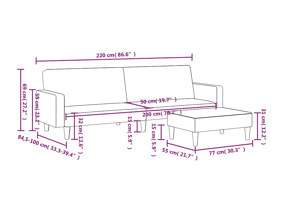 Schlafsofa 2-Sitzer mit Fußhocker Dunkelgrau Samt