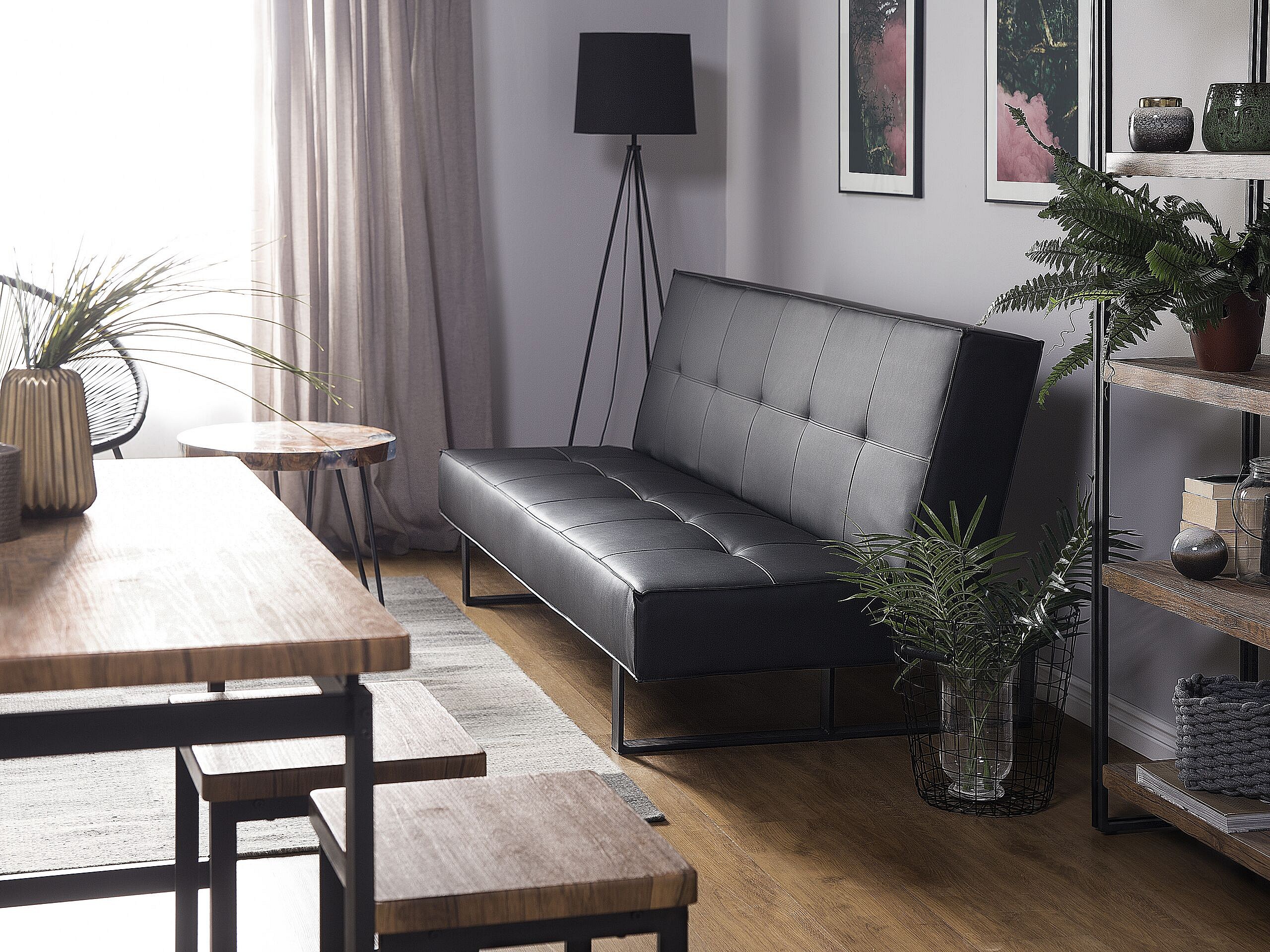 3-Sitzer Schlafsofa Kunstleder schwarz gesteppt Sofa mit Schlaffunktion Derby