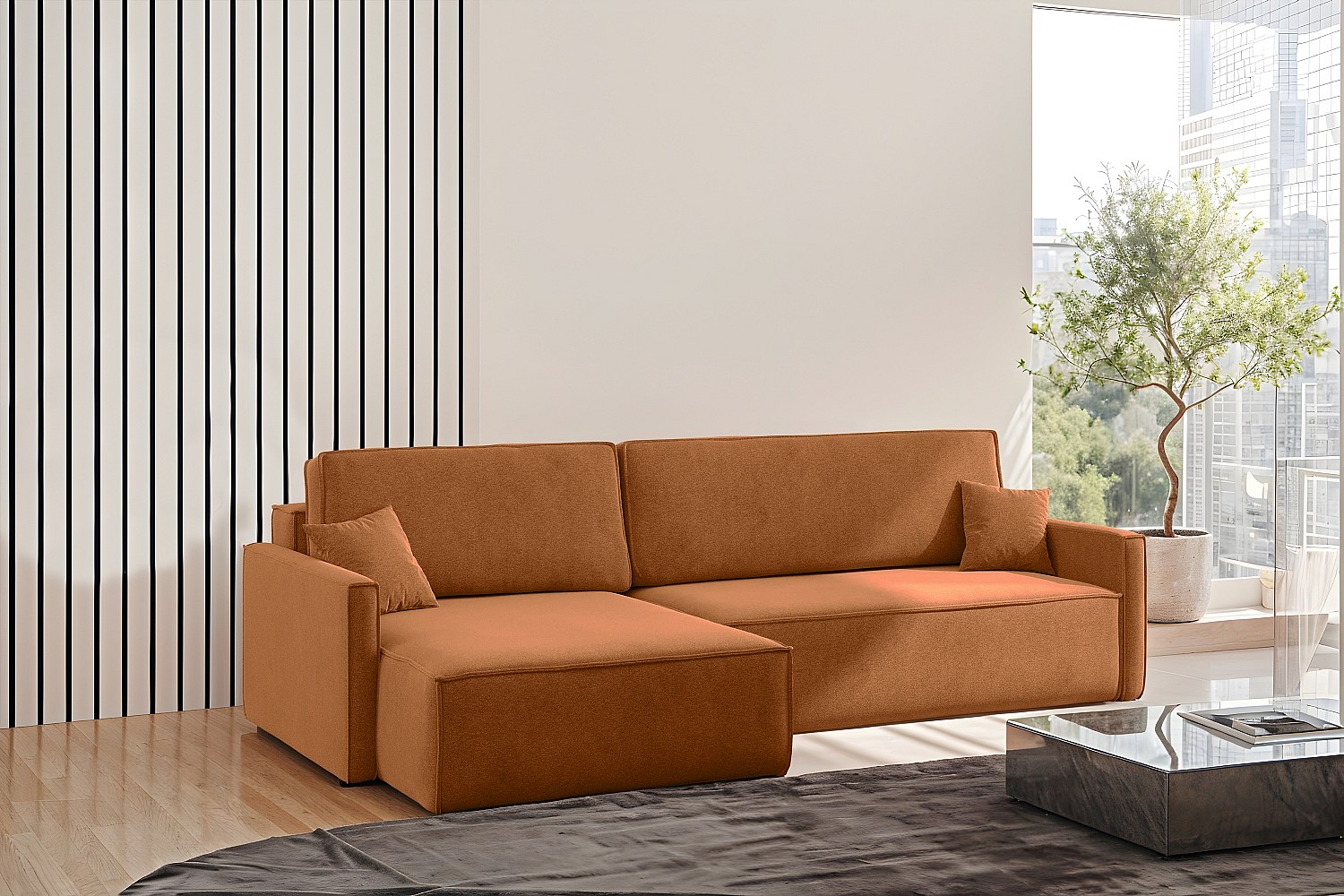 Schlafsofa Carlos L-Form, Ecksofa Mit Bettkasten Und Schlaffunktion Stoff Salvador Rechts Braun