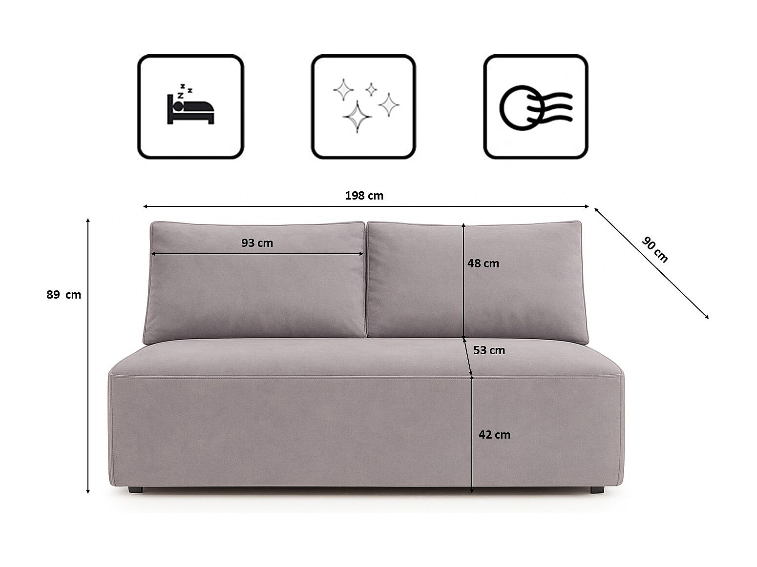 Schlafsofa mit Bettkasten DUO, Stoff Salvador, Grau