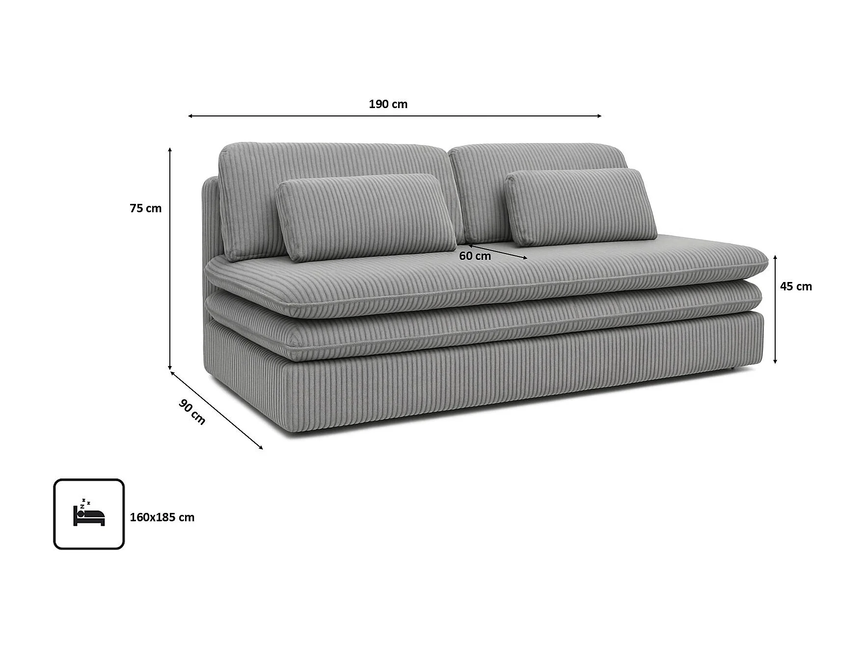 Schlafsofa, Sofa mit Schlaffunktion und Bettkasten, DUO, Stoff Velo, Grau