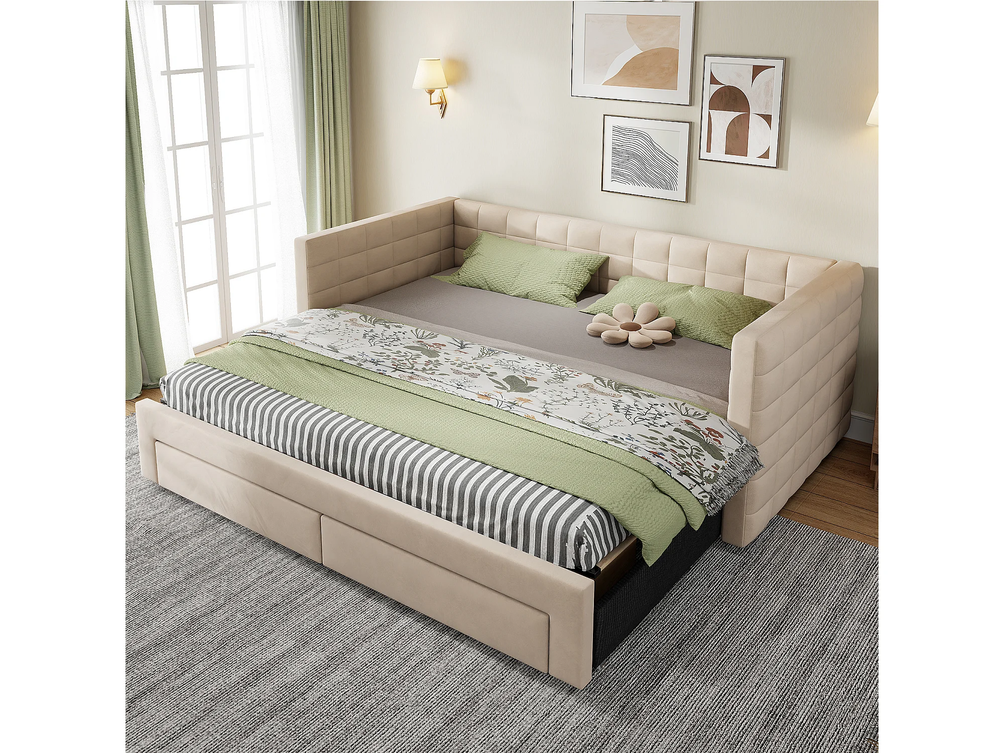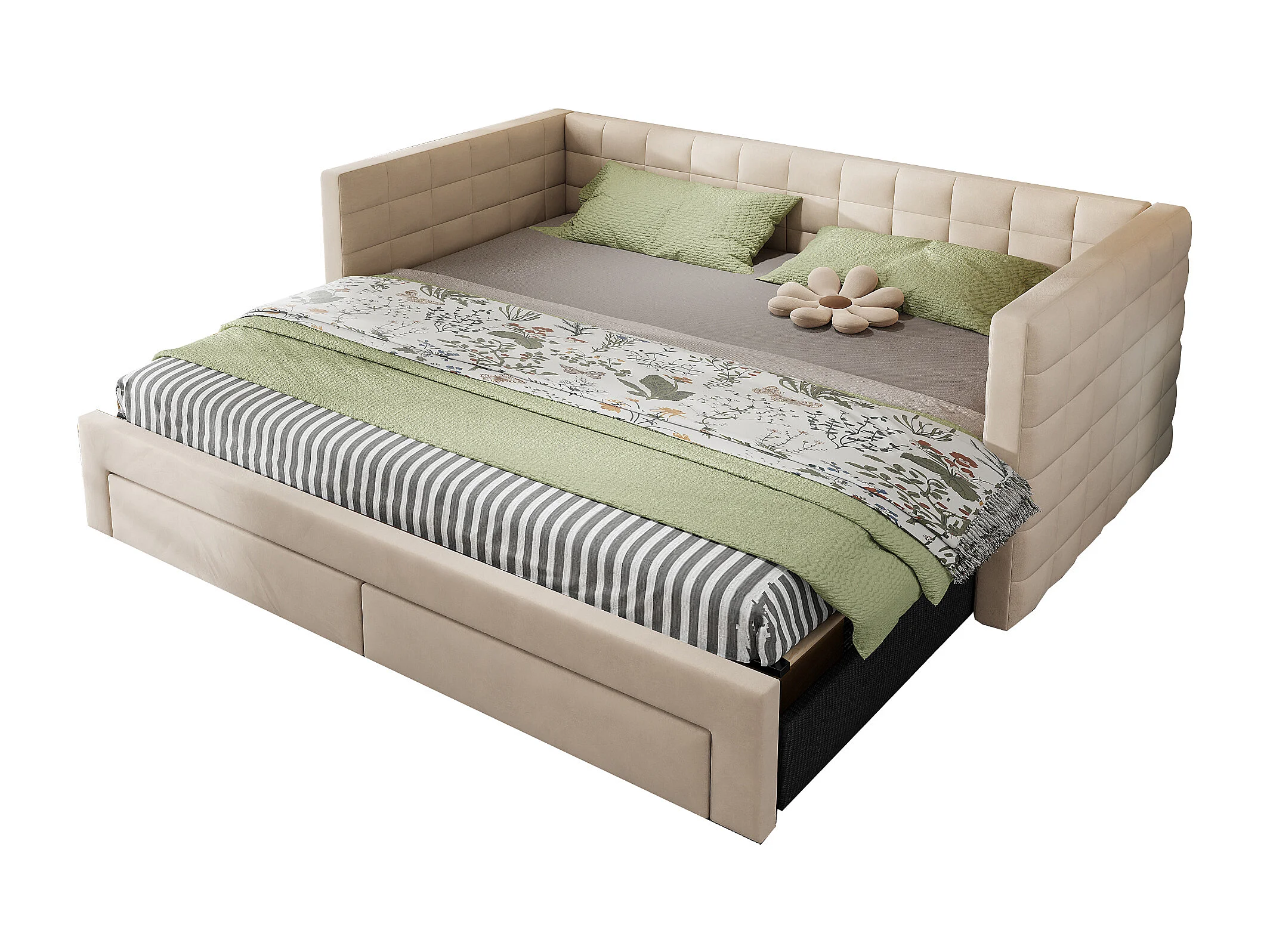 Schlafsofa mit Polsterung 90×190 cm - mit 2 Schubladen - mit Lattenrost - beige (Matratze nicht inbegriffen)