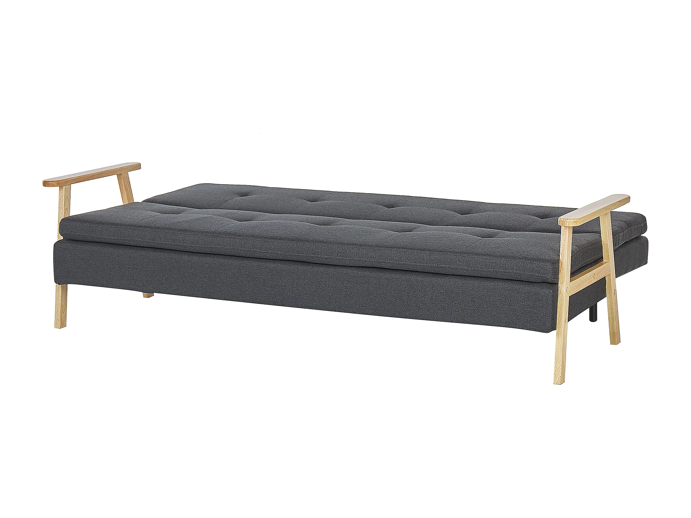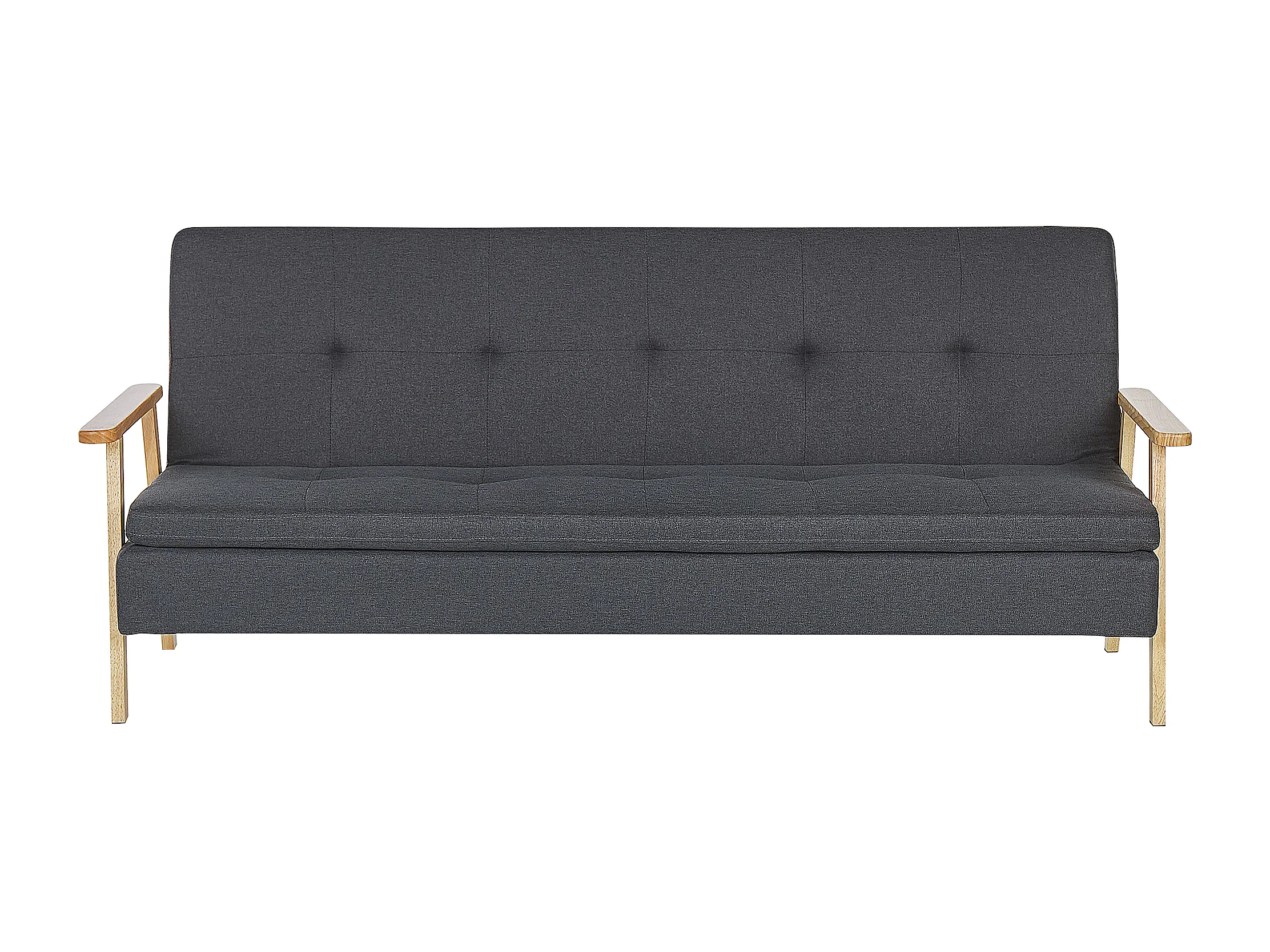 3-Sitzer Sofa Stoff dunkelgrau gesteppt Schlaffunktion Armlehnen hellbraun Tjorn