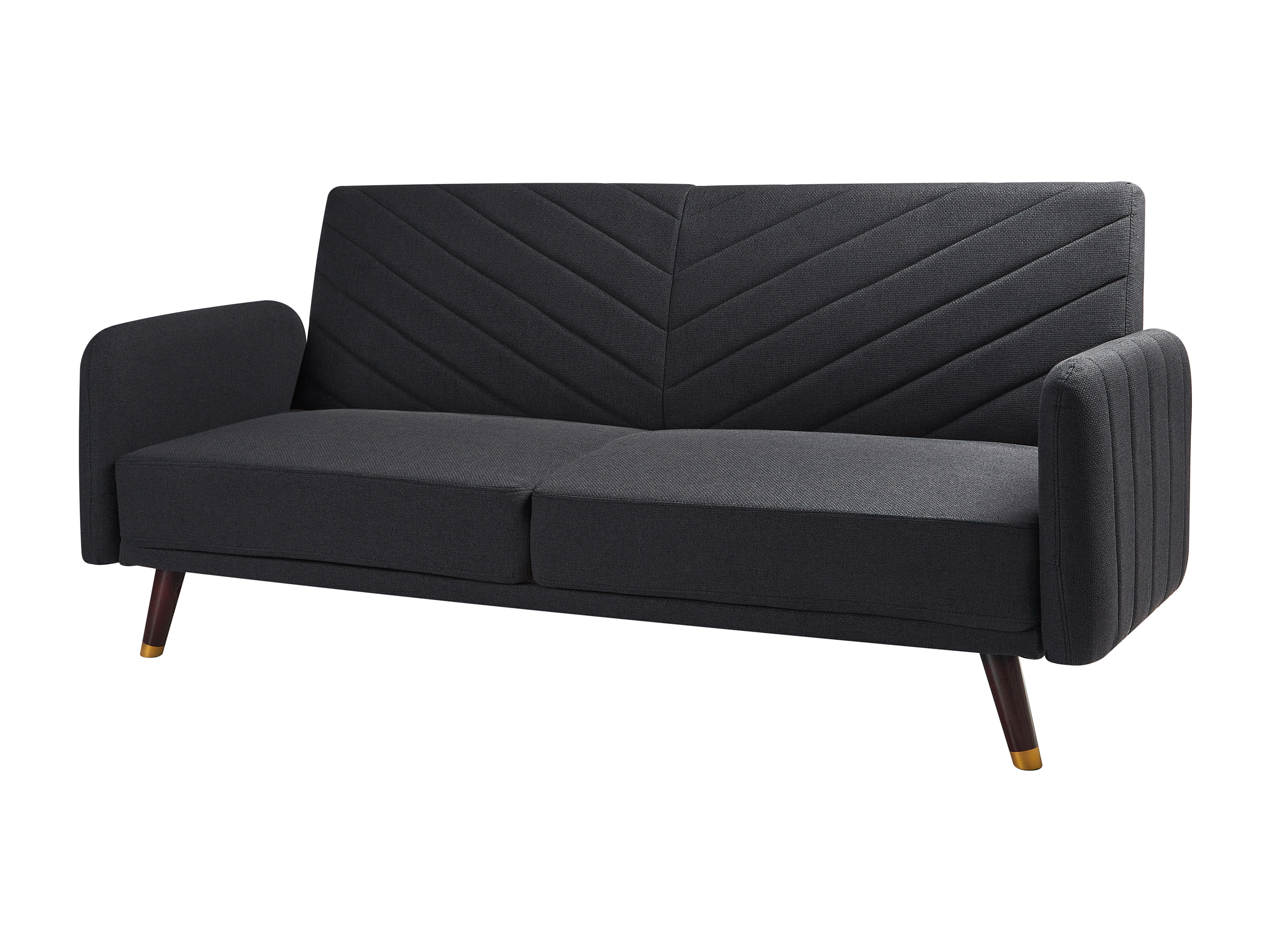 3-Sitzer Schlafsofa Stoffbezug schwarz gesteppt mit hohen Holzbeinen Vimmerby
