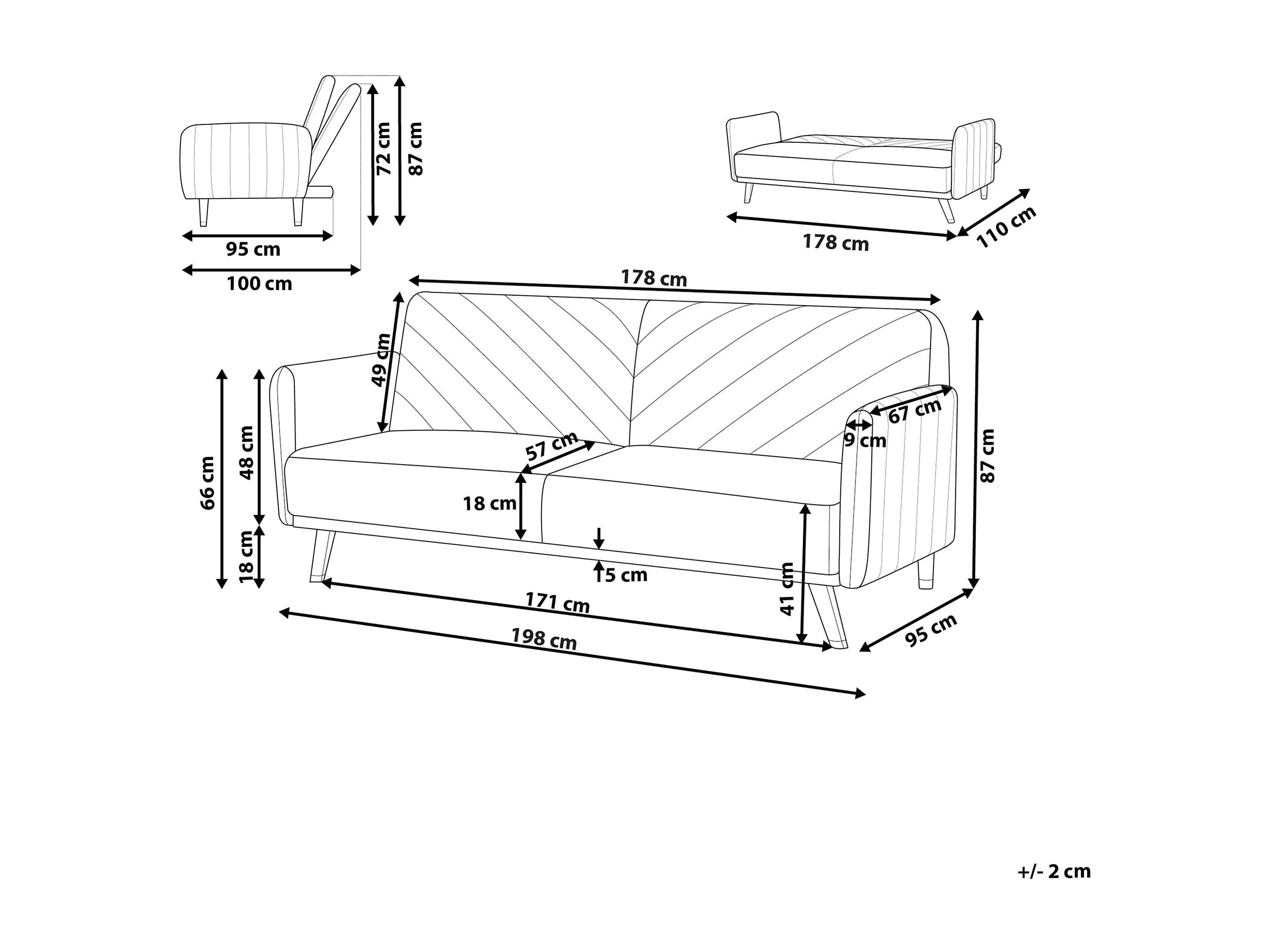 3-Sitzer Sofa klappbar Kunstleinen schwarz gesteppt Schlafsofa Retro-Stil Senja