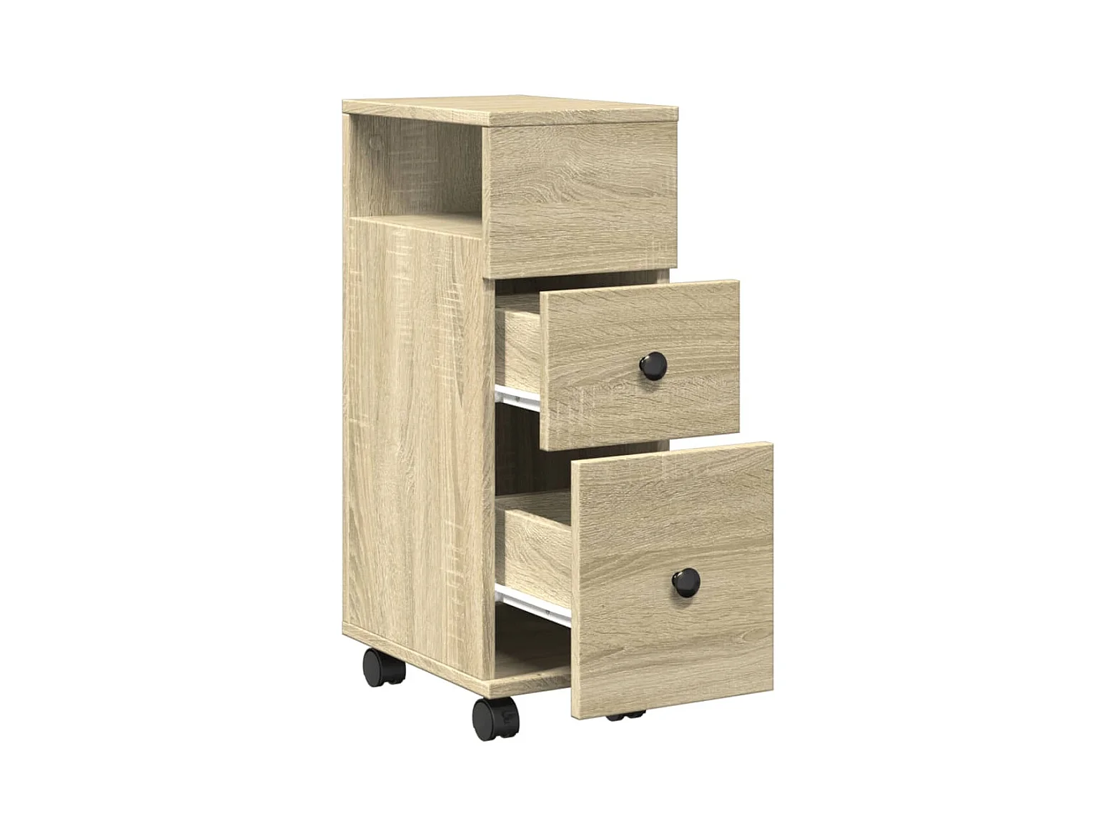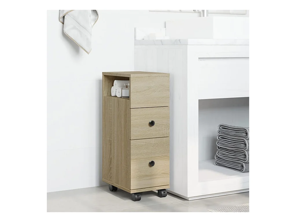 Schmaler Badezimmerschrank auf Rollen in Sonoma-Eiche