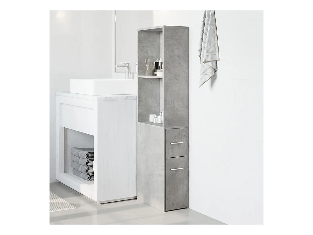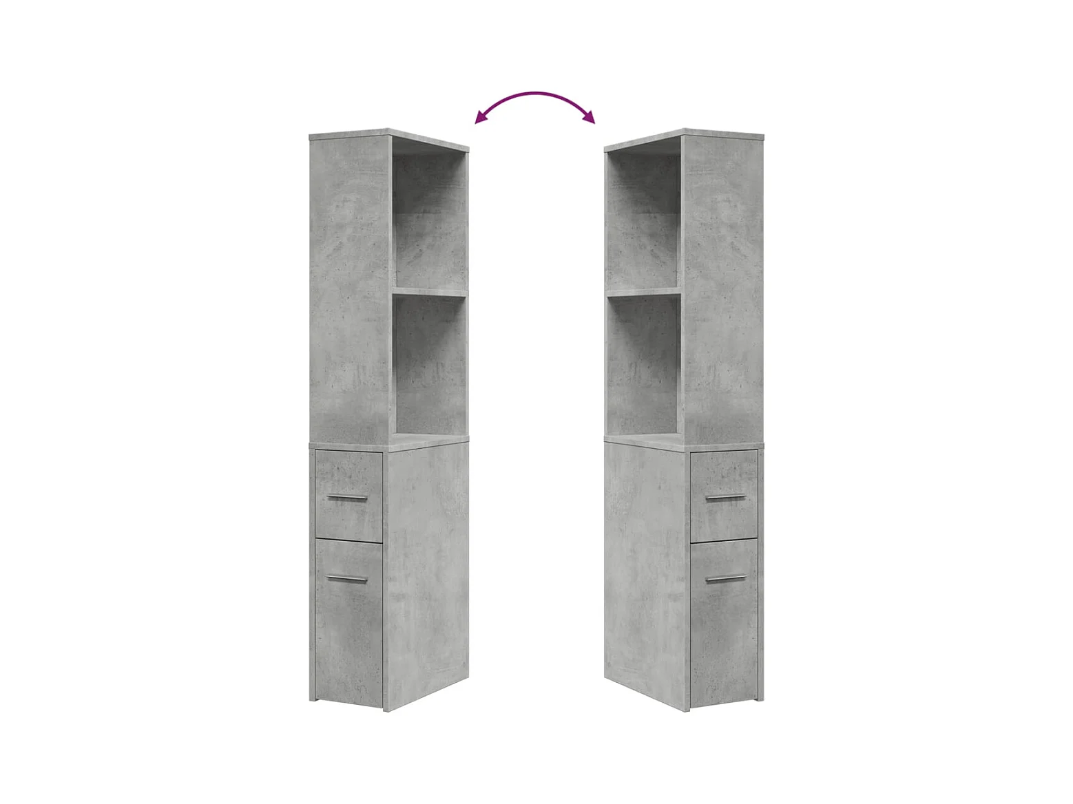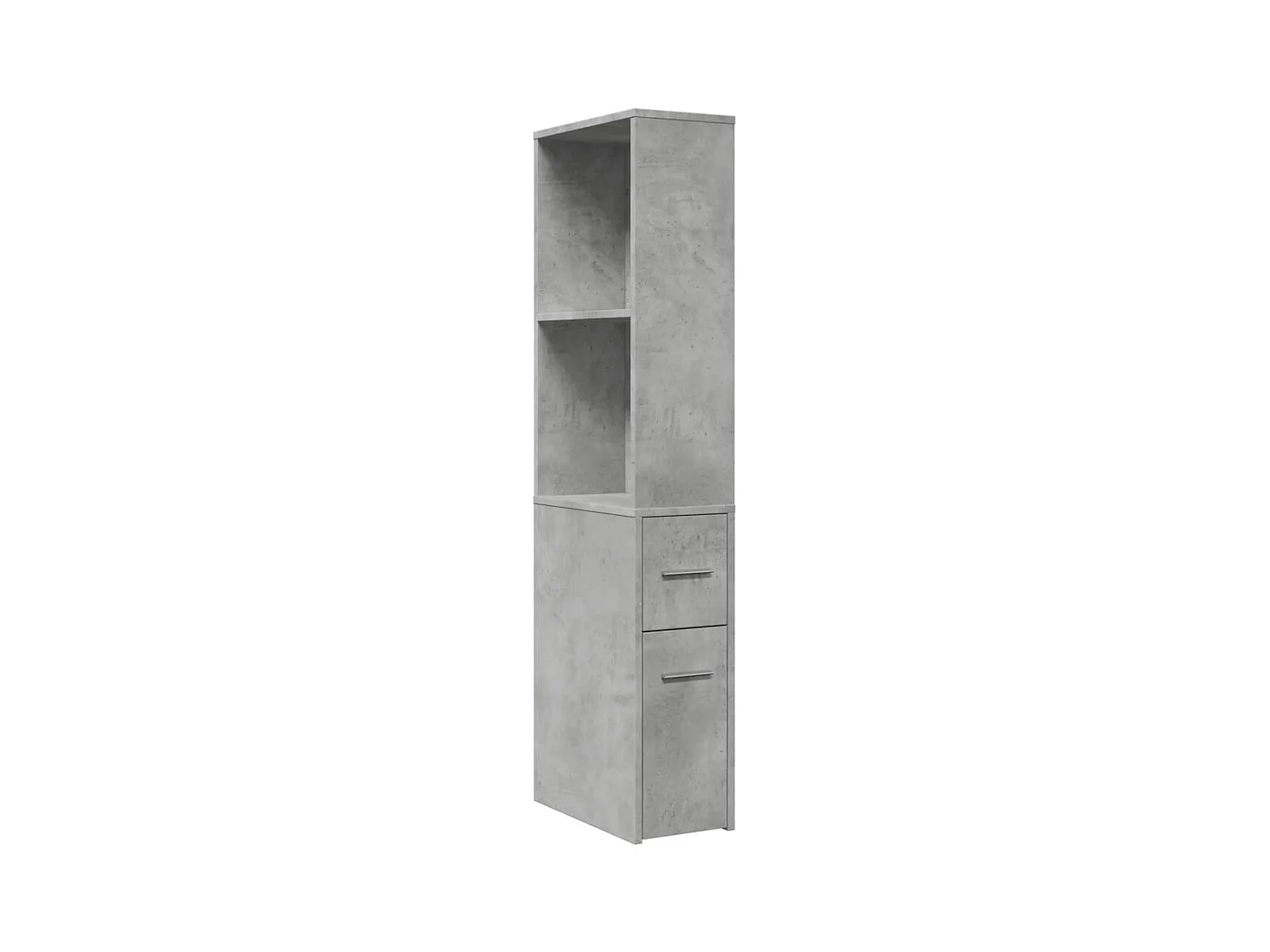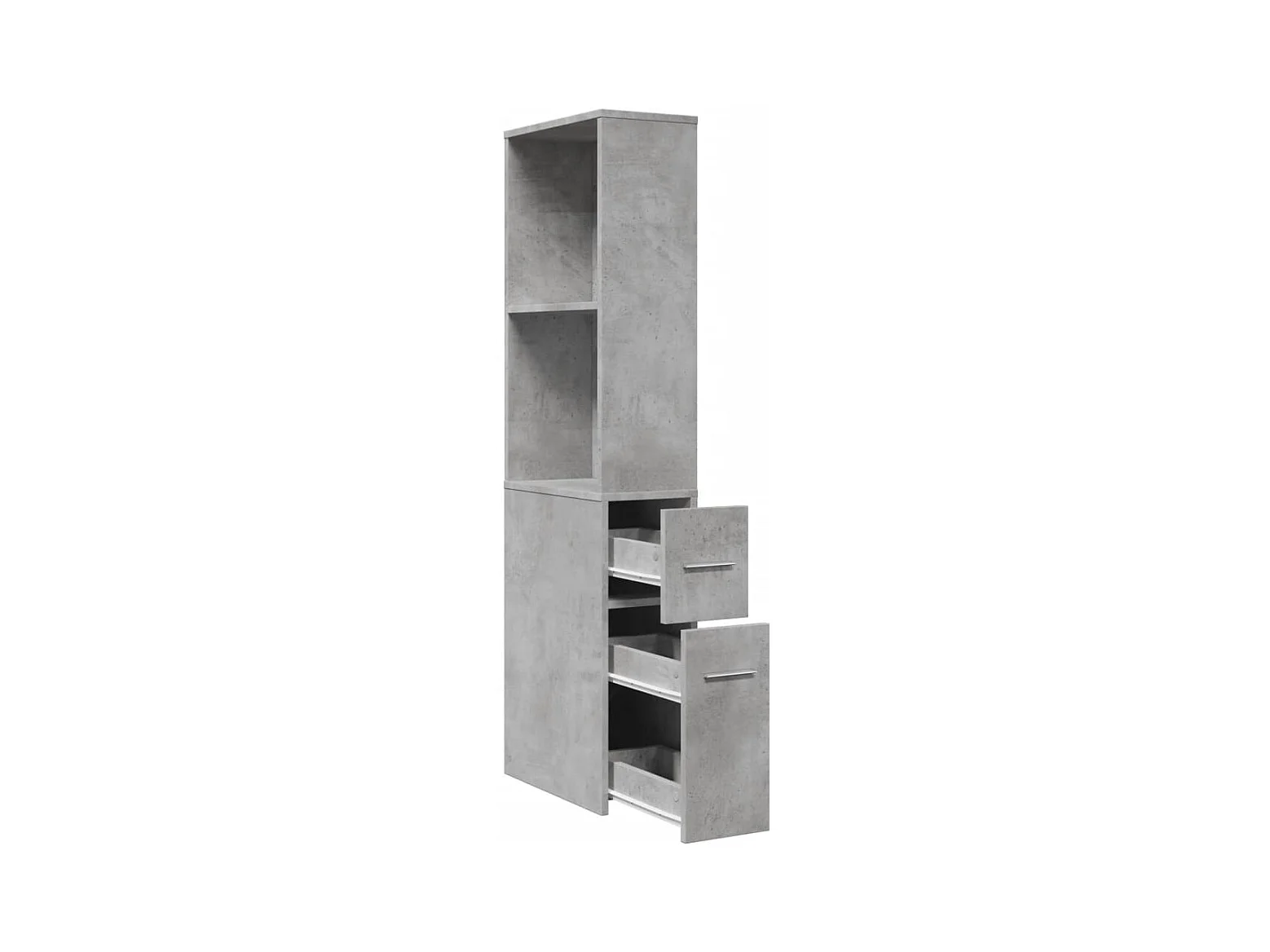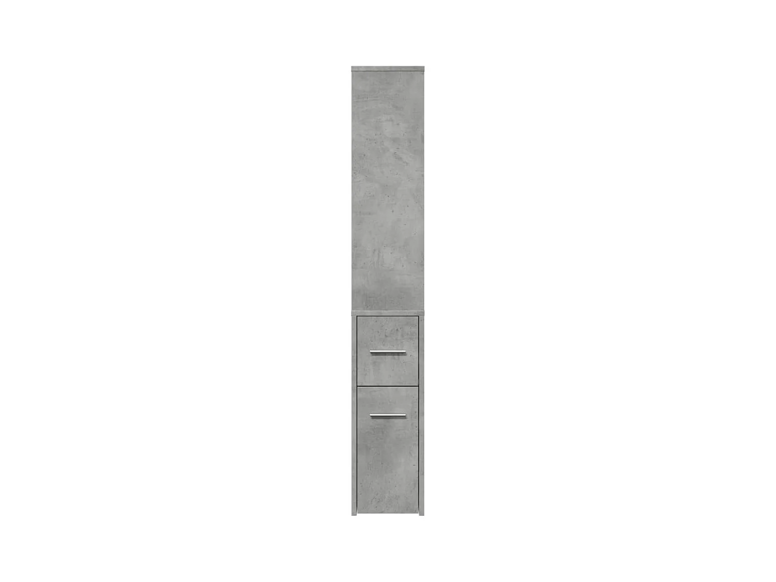 Schmaler Badezimmerschrank mit betongrauen Rollen