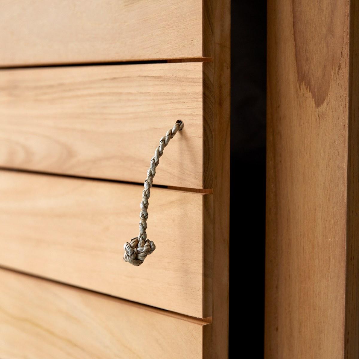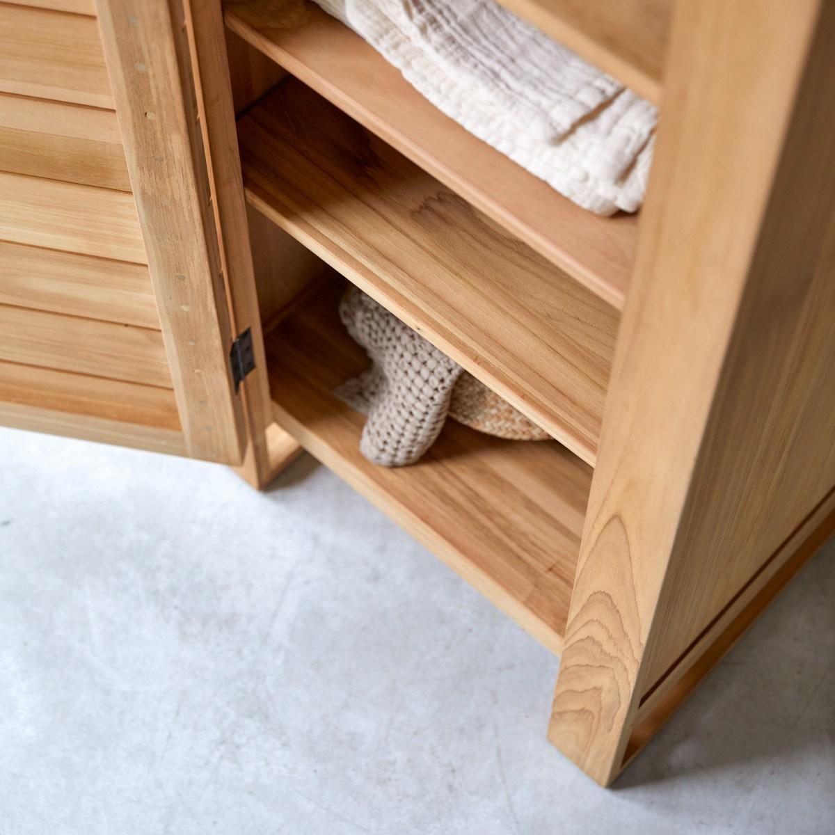 Schmaler Schrank für Flur oder Wohnzimmer 180 cm Teakholz Lattenoptik