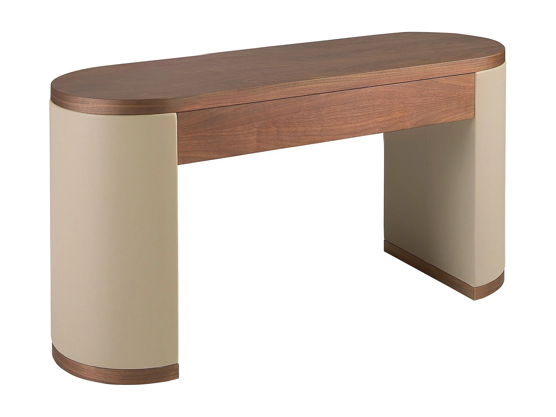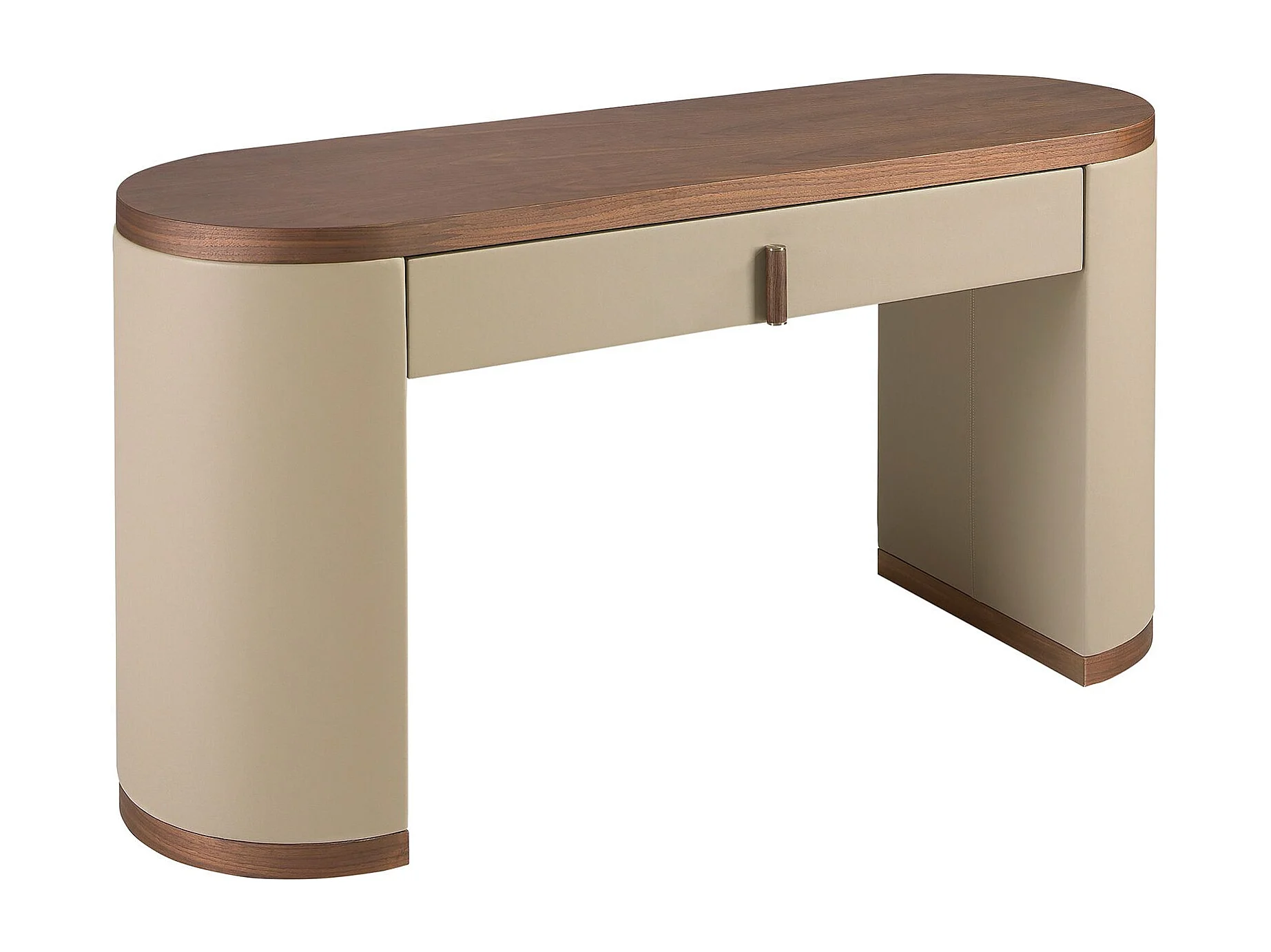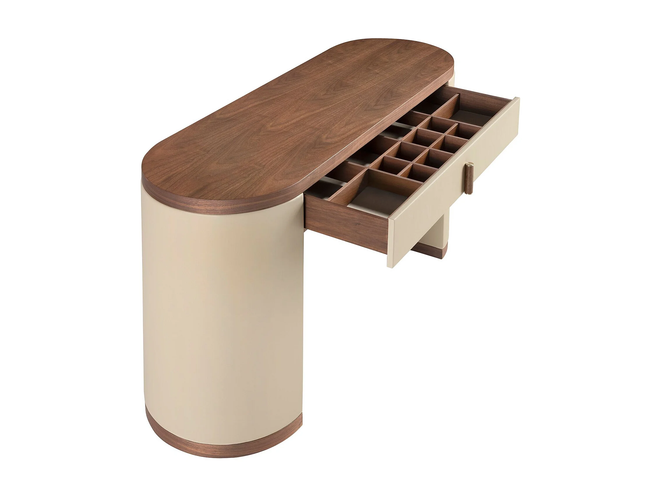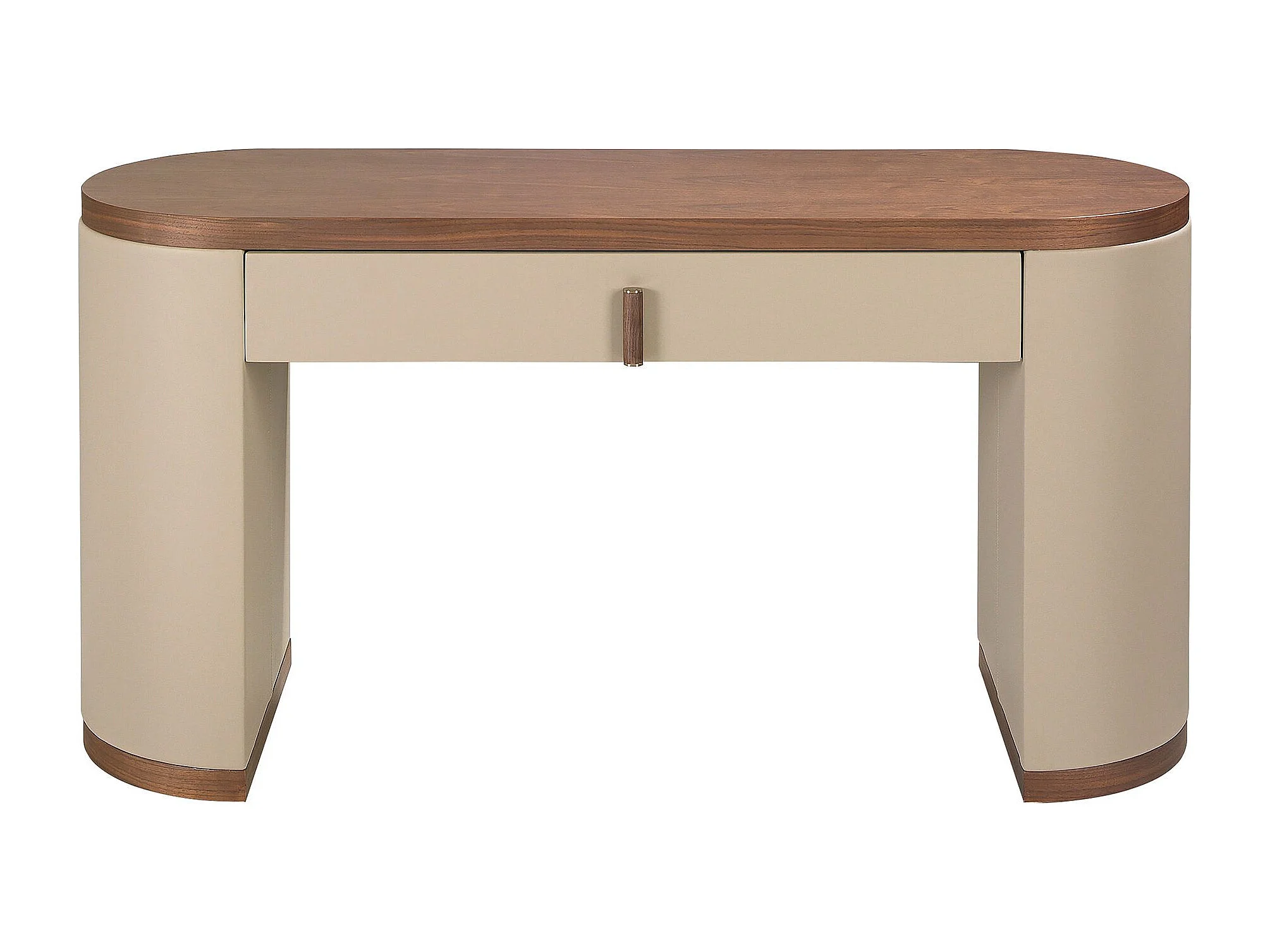 Schminktisch aus Kunstleder, Nussbaum und Holz mit visonfarbenem Kunstleder bezogen 7220 ANGEL CERDA