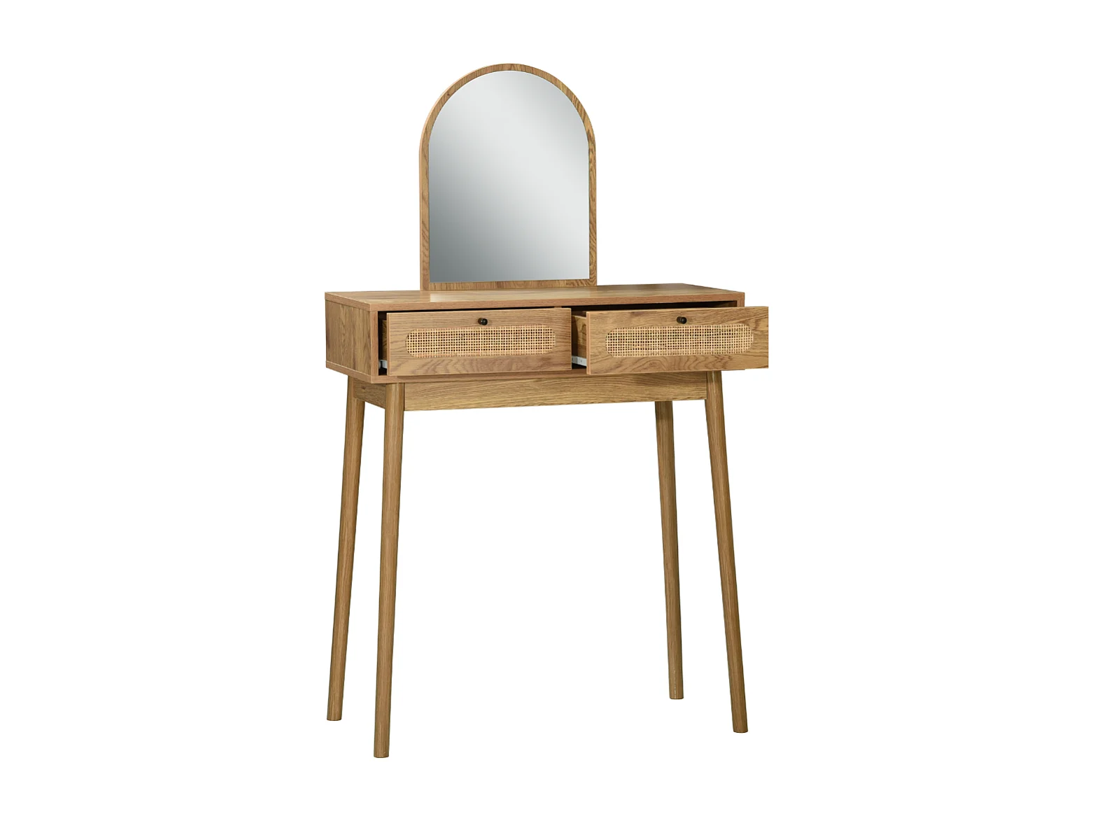 Schminktisch mit Spiegel und 2 Schubladen mit Rattanfronten, Breite 80 cm - ALIA