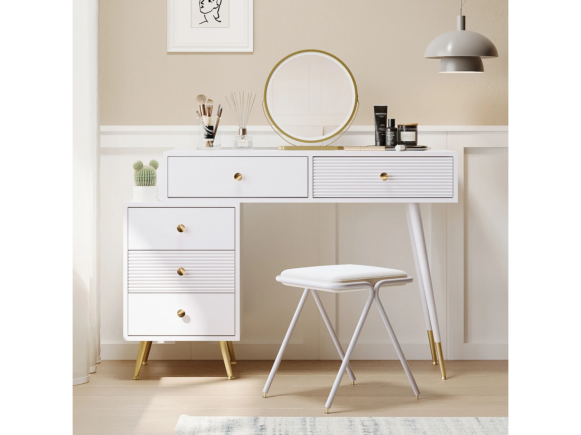 Schminktisch mit Spiegel 100x40x78cm - mit LED-Beleuchtung - mit 5 Schubladen - tragbarer Desktop-Computer - Weiß (ohne Hocker)