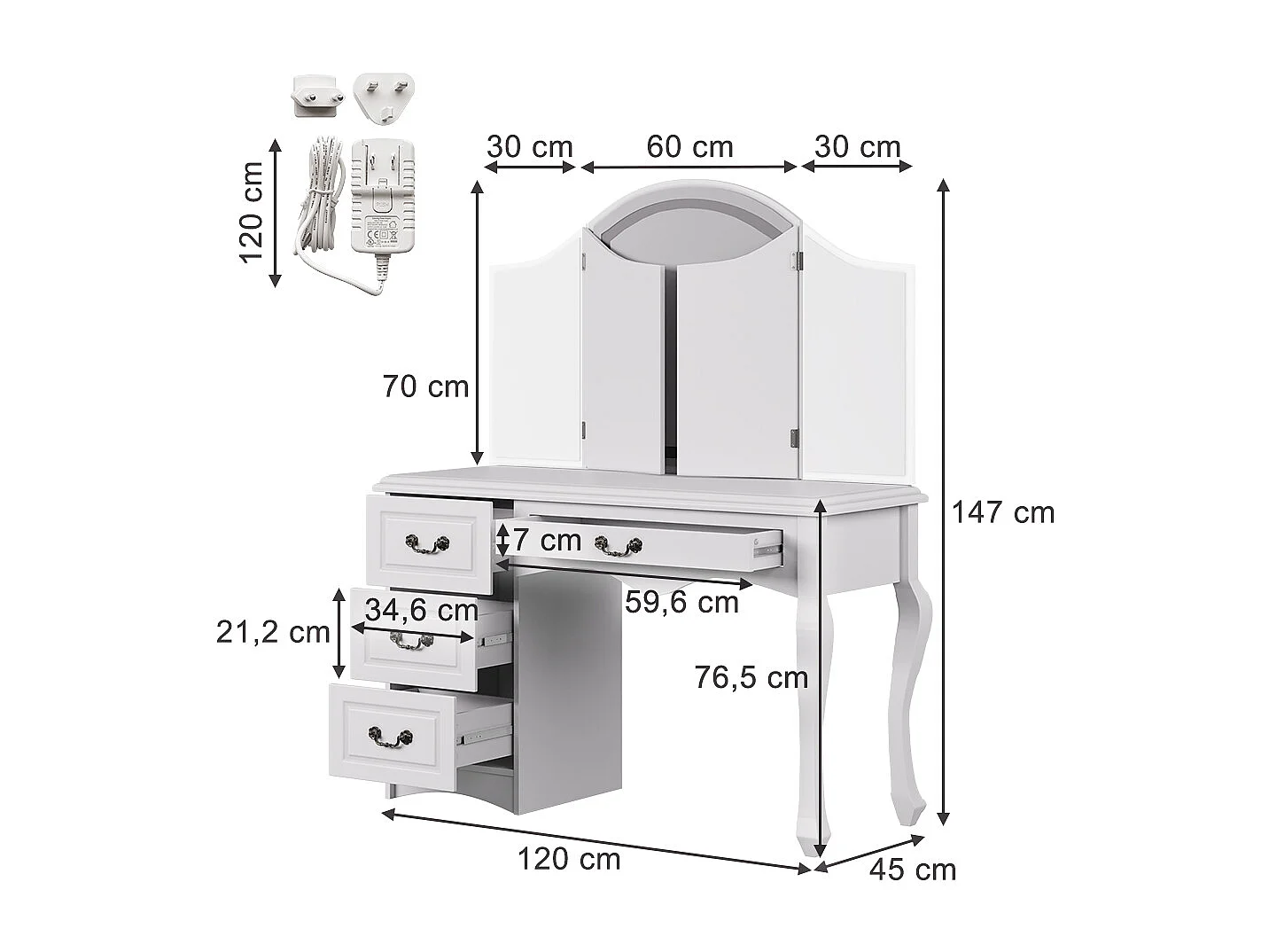 Schminktisch weiß/weiß hochglanz 120x50.1x76 sherry