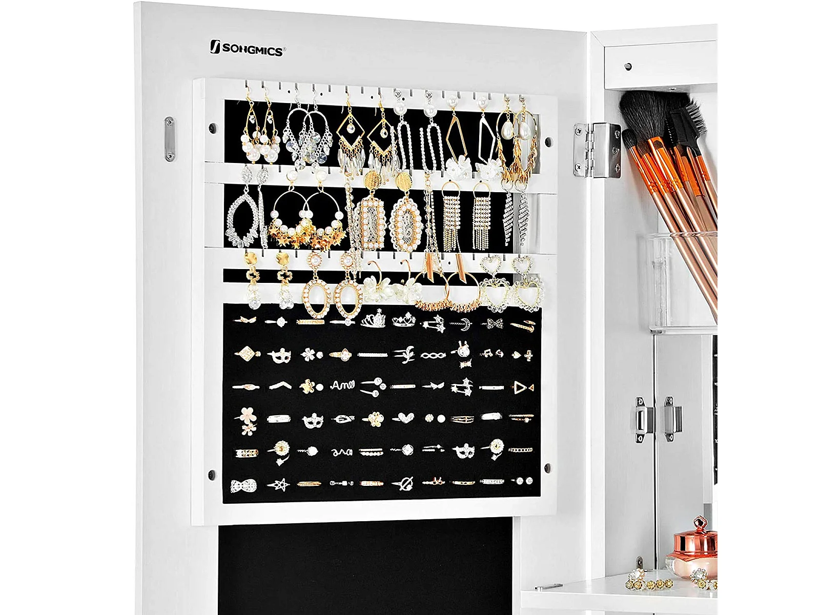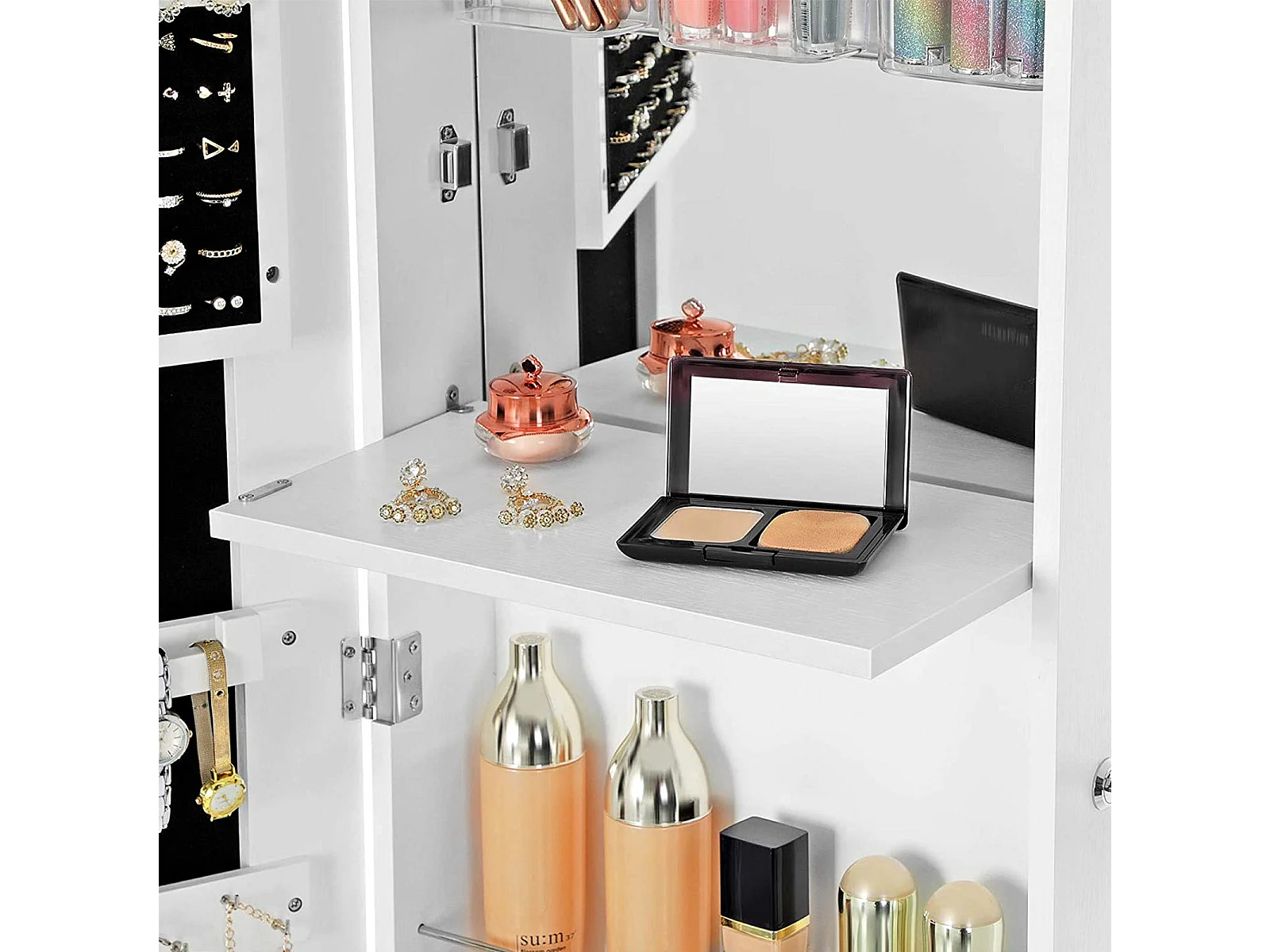 Spiegelschrank Schmuck- und Make-up-Organizer mit Ganzkörperspiegel 42 x 38 x 157 cm Weiß