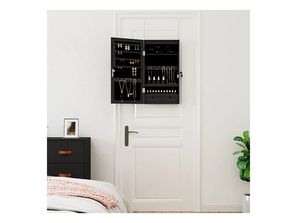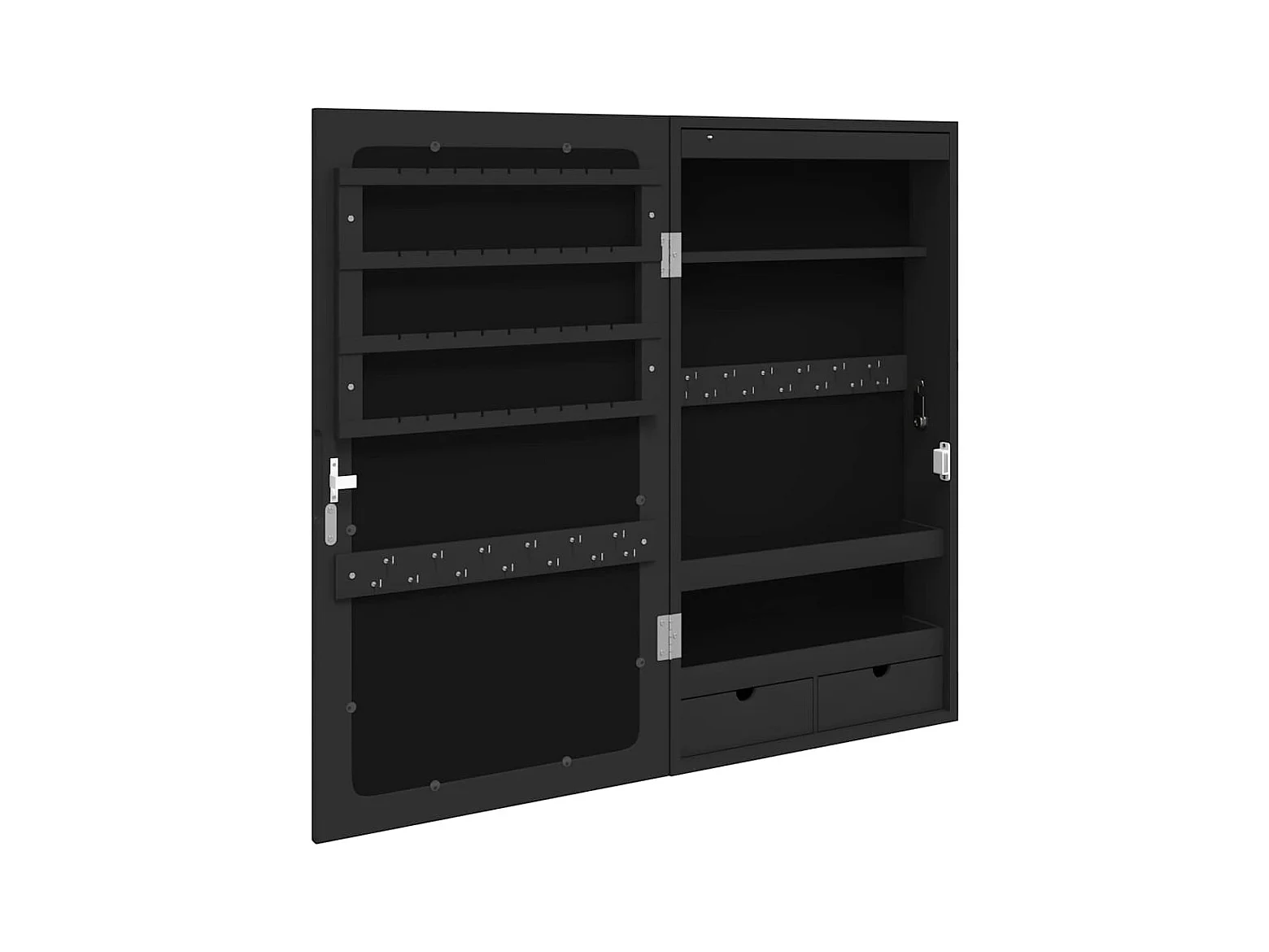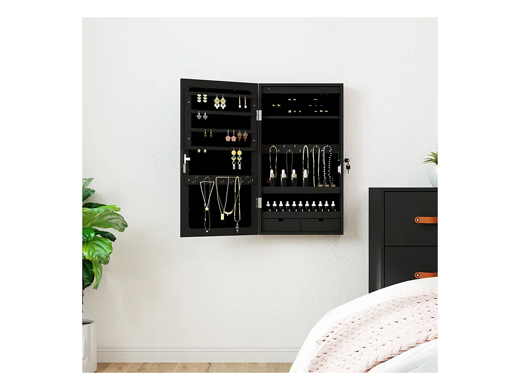 Schmuckschrank mit Spiegel und schwarzer LED-Wandbeleuchtung