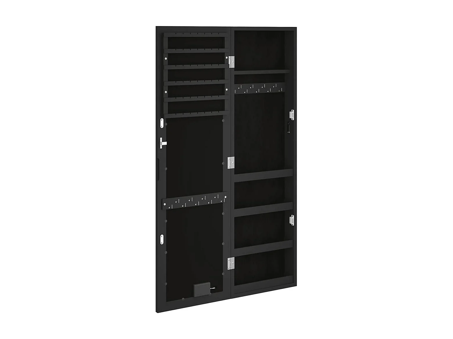 Schmuckschrank mit Spiegel und schwarzer LED-Wandbeleuchtung