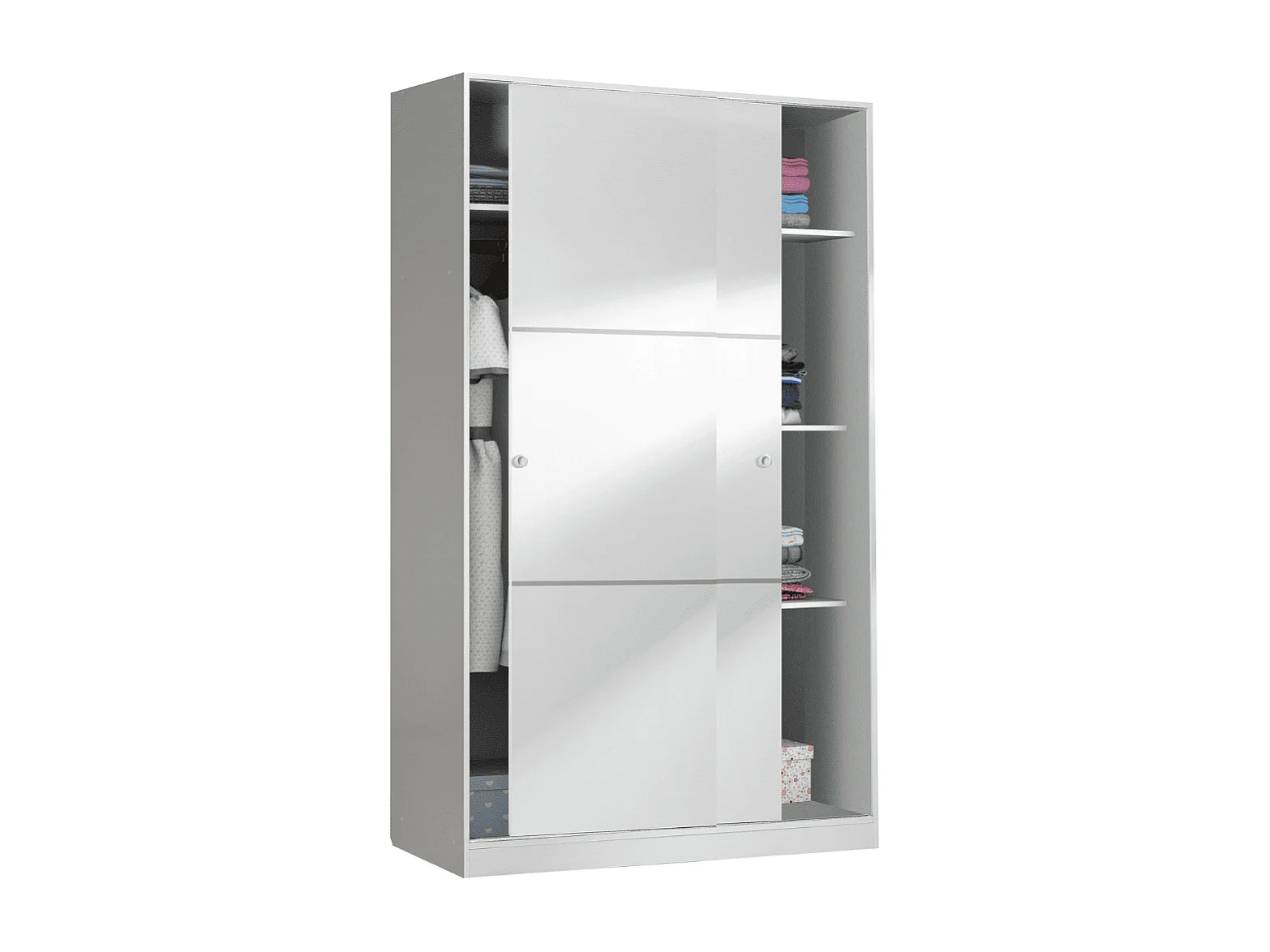 Schrank mit 2 Schiebetüren, Hochglanz-Weiß, H200 cm - NINO