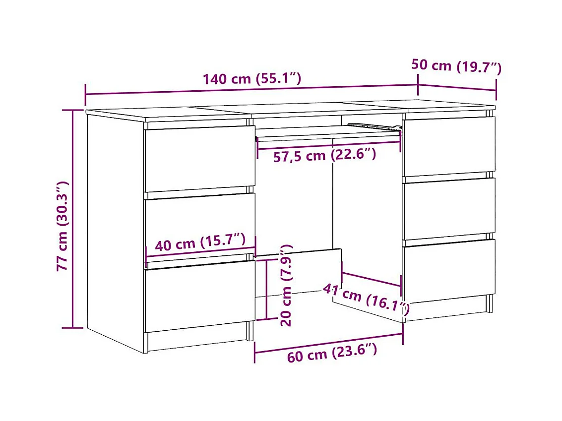 Schreibtisch Artisan-Eiche 140x50x77 cm Holzwerkstoff