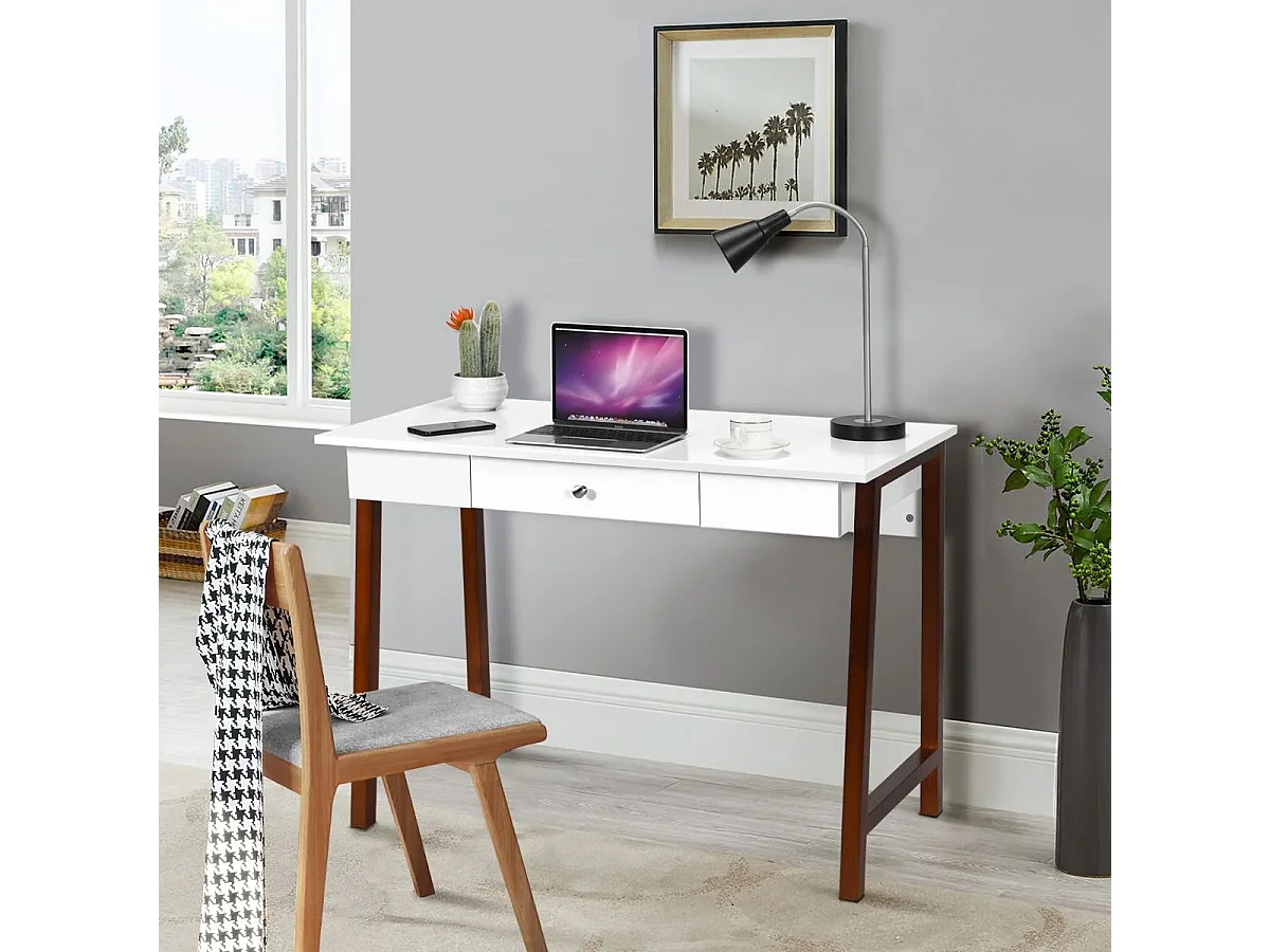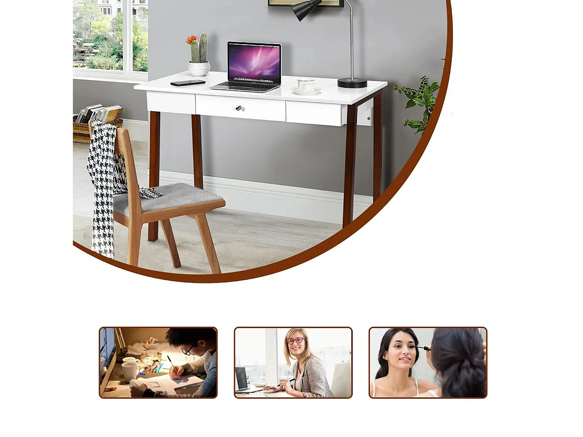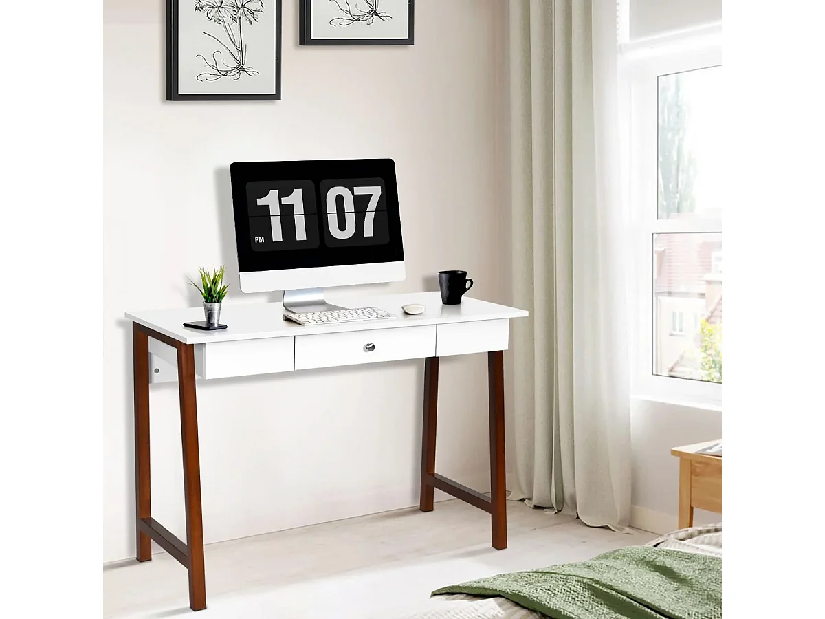 Schreibtisch mit Schublade Computertisch Kautschuk Tischbeine Schminktisch Bürotisch Braun
