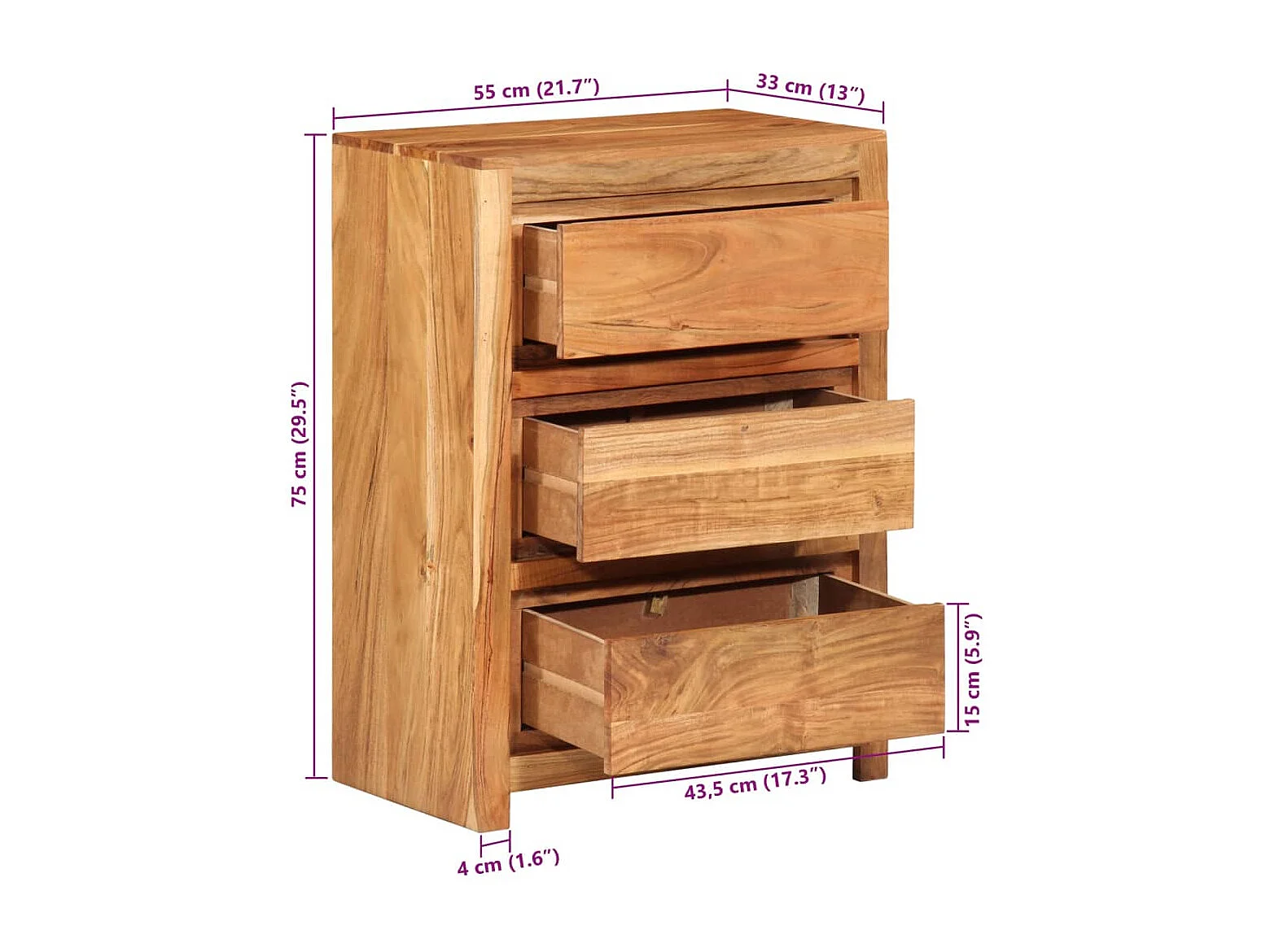 Schubladenschrank 55x33x75 cm aus massivem Akazienholz