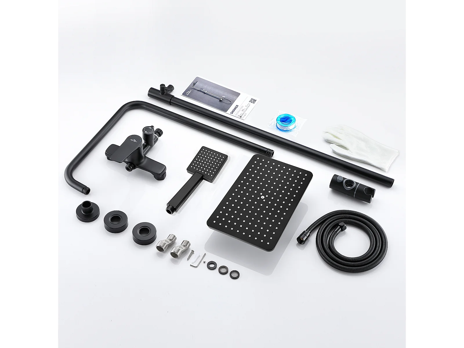 Schwarze Duschsäule mit Wasserhahn, höhenverstellbar, Duschset mit 2 Funktionen, mit Kopfbrause und Handbrause