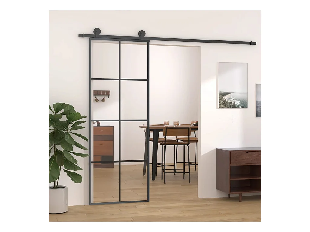 Schwarze Schiebetür 76x205 cm ESG Glas und Aluminium