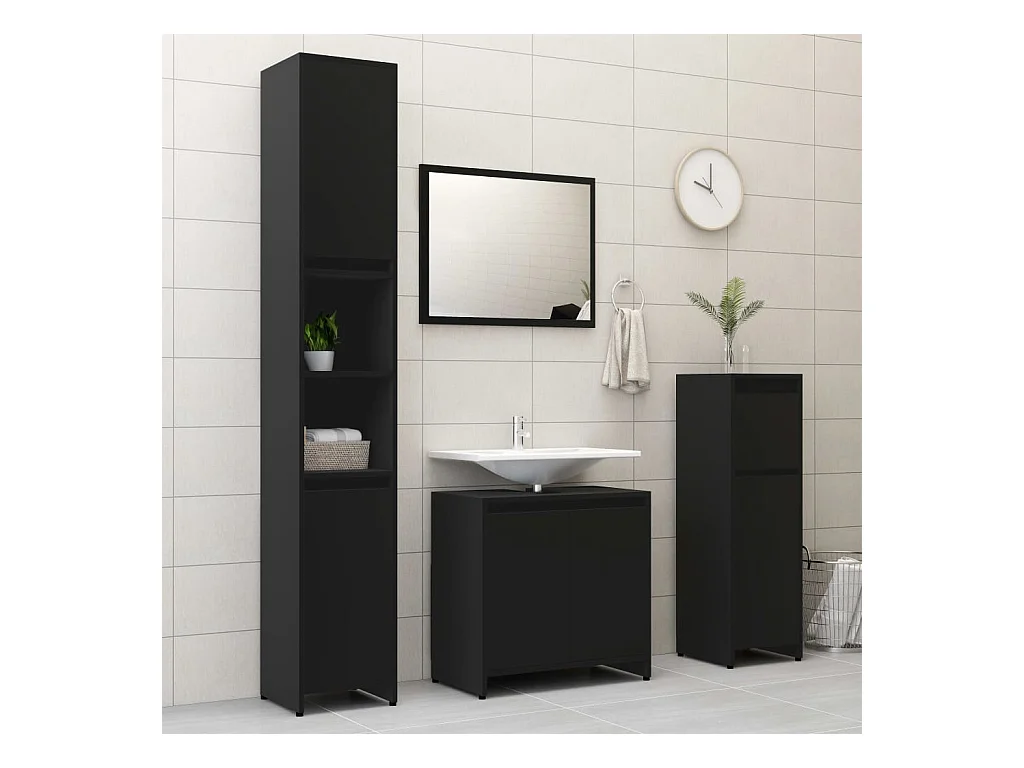 Schwarzer Badezimmerschrank 30x30x190 cm aus Holzwerkstoff