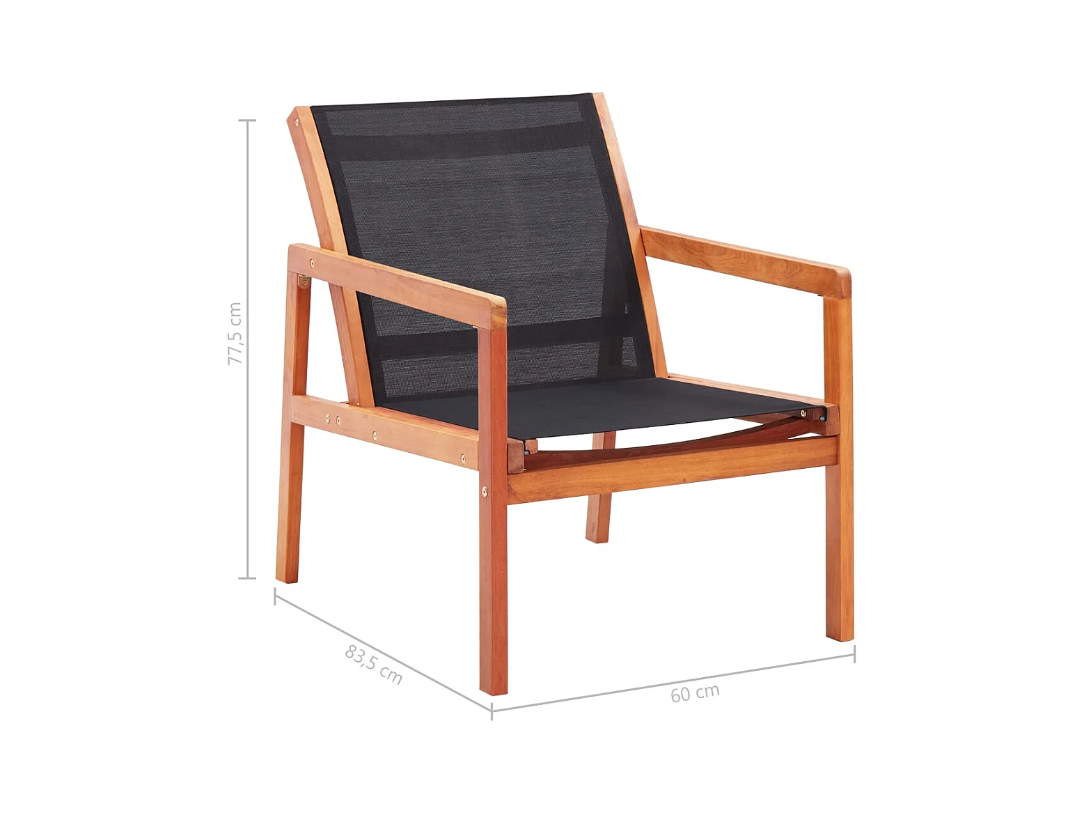 Schwarzer Gartenstuhl aus massivem Eukalyptusholz und Textilene