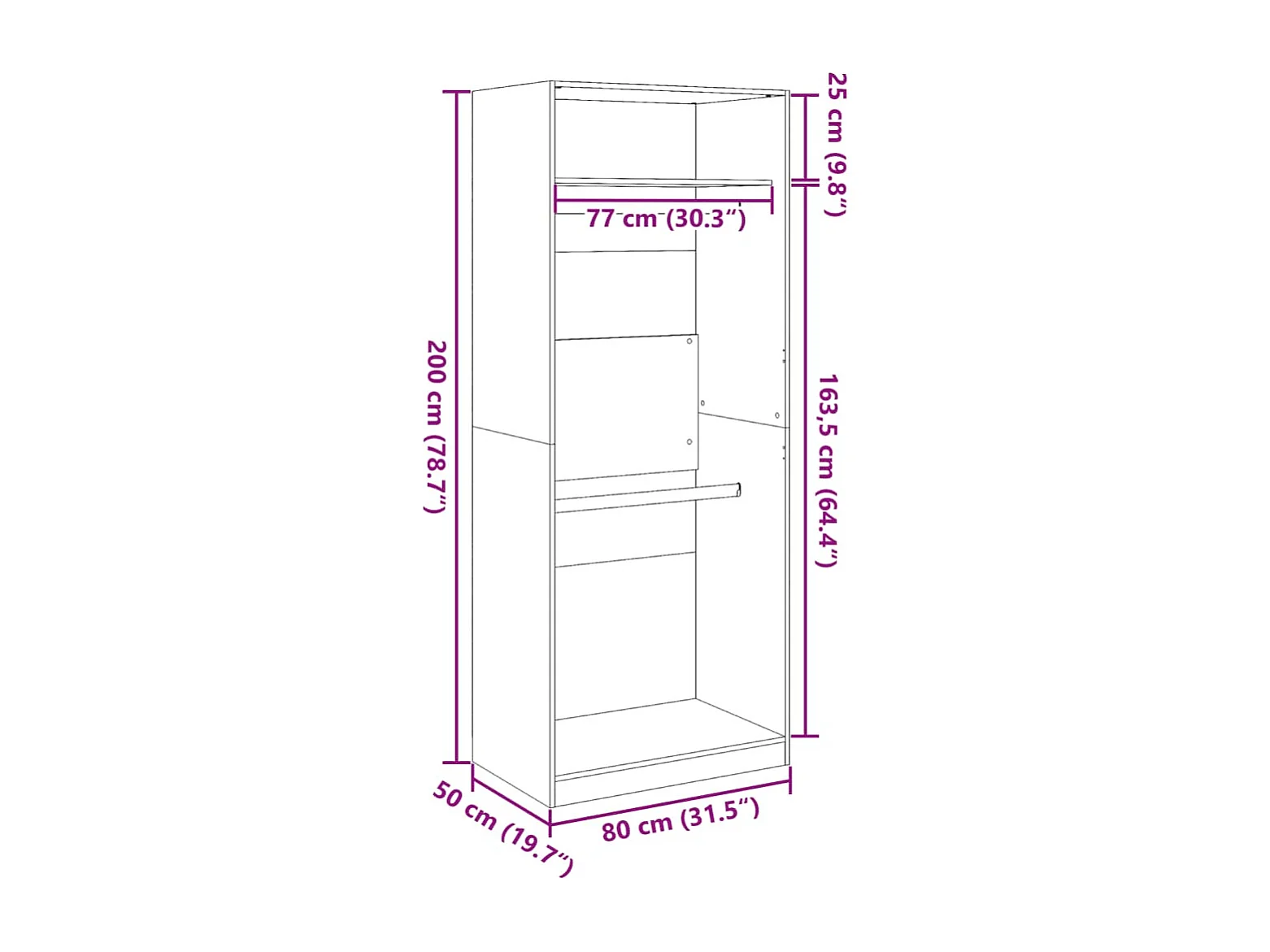 Kleiderschrank Eiche schwarz 80 x 50 x 200 cm Holzwerkstoff