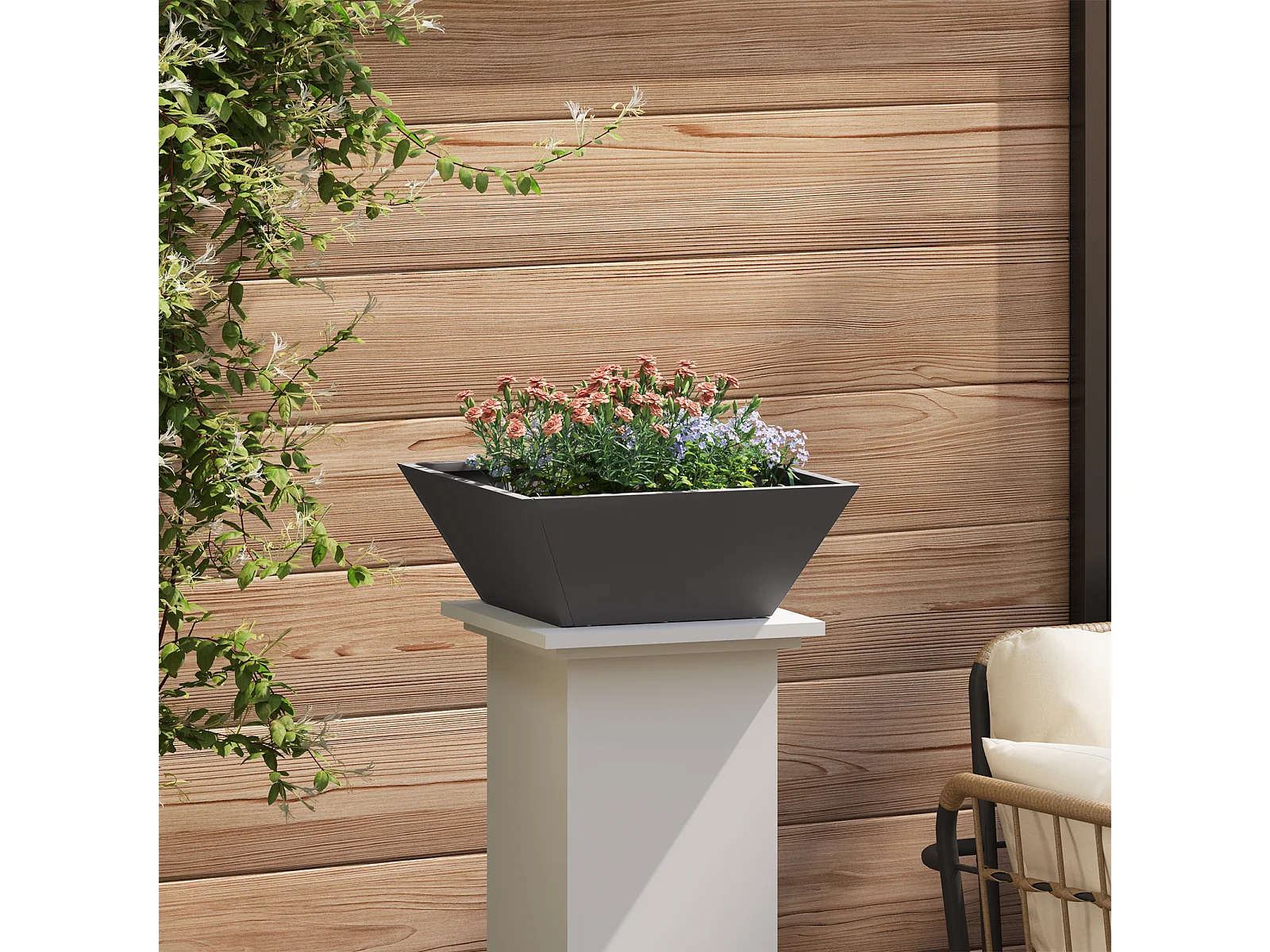 Schwarzer Metall-Pflanzkübel Metall 40 x 40 x 15 cm Langlebig