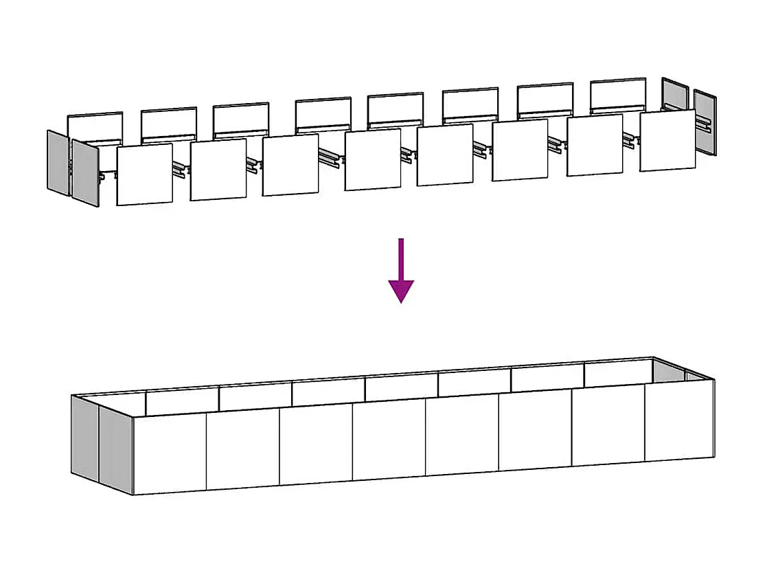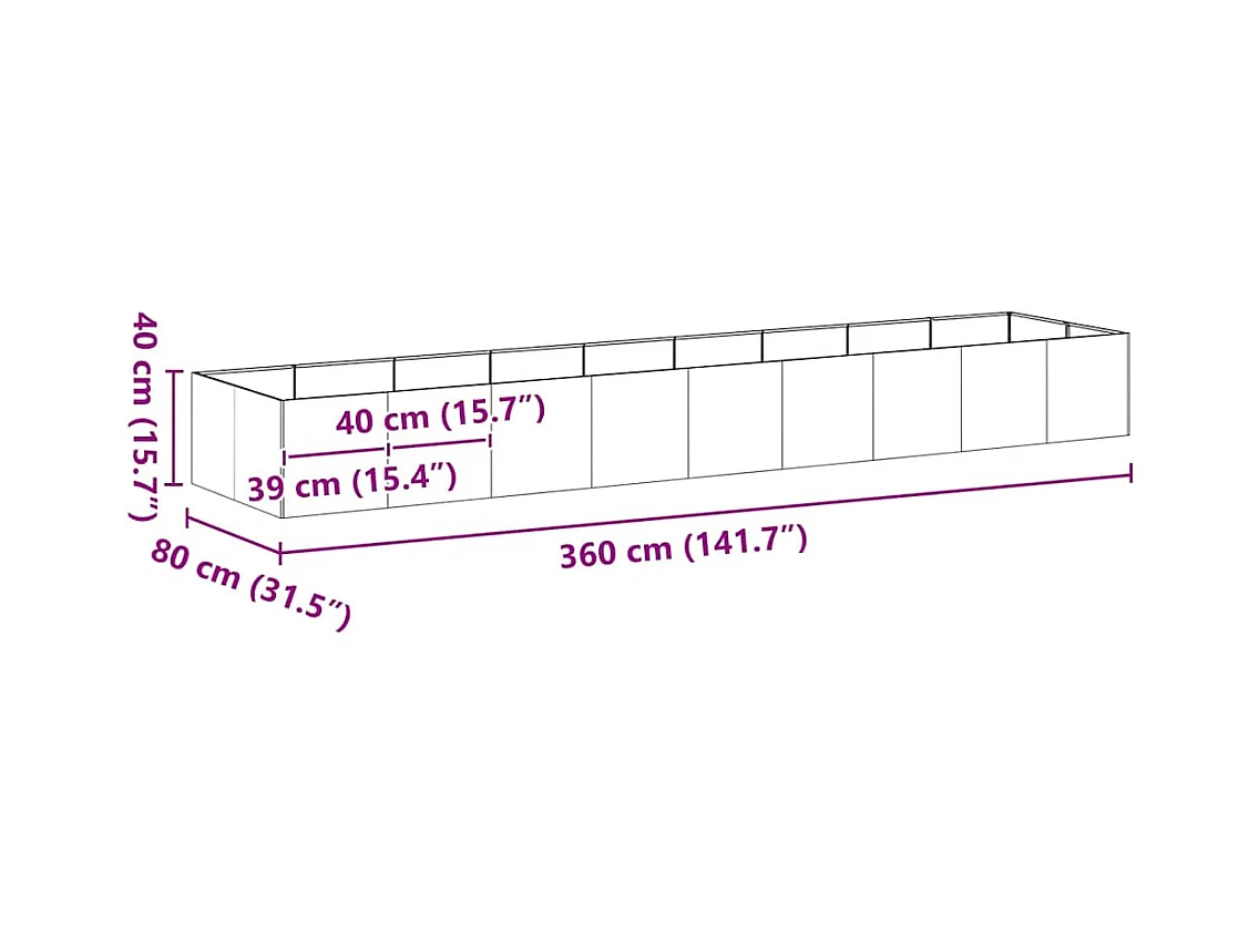 Schwarzer Pflanzkübel 280x40x40 cm aus kaltgewalztem Stahl