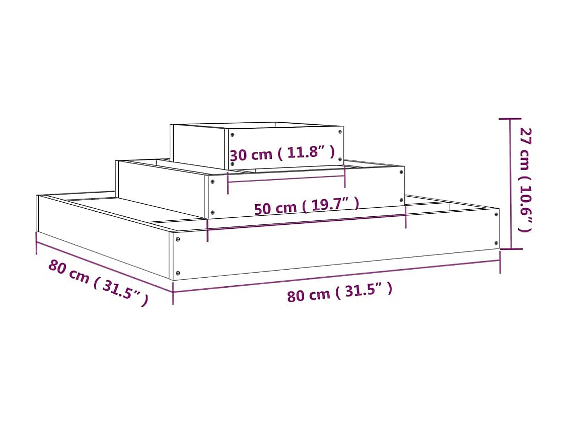 Schwarzer Pflanzkübel 80x80x27 cm Massivholz Kiefer