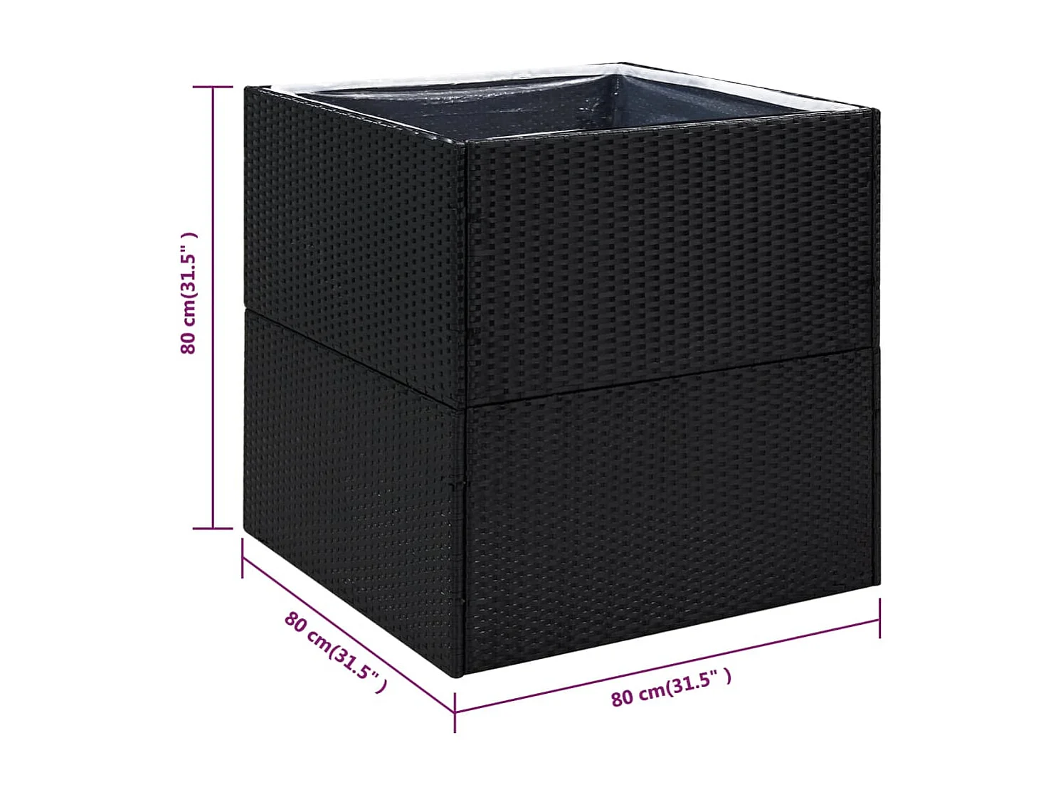 Schwarzer Pflanzkübel 80x80x80 cm aus gewebtem Harz