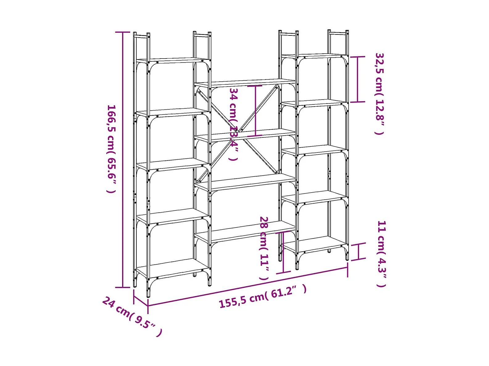 Schwarzes Bücherregal 155,5 x 24 x 166,5 cm, Holzwerkstoff