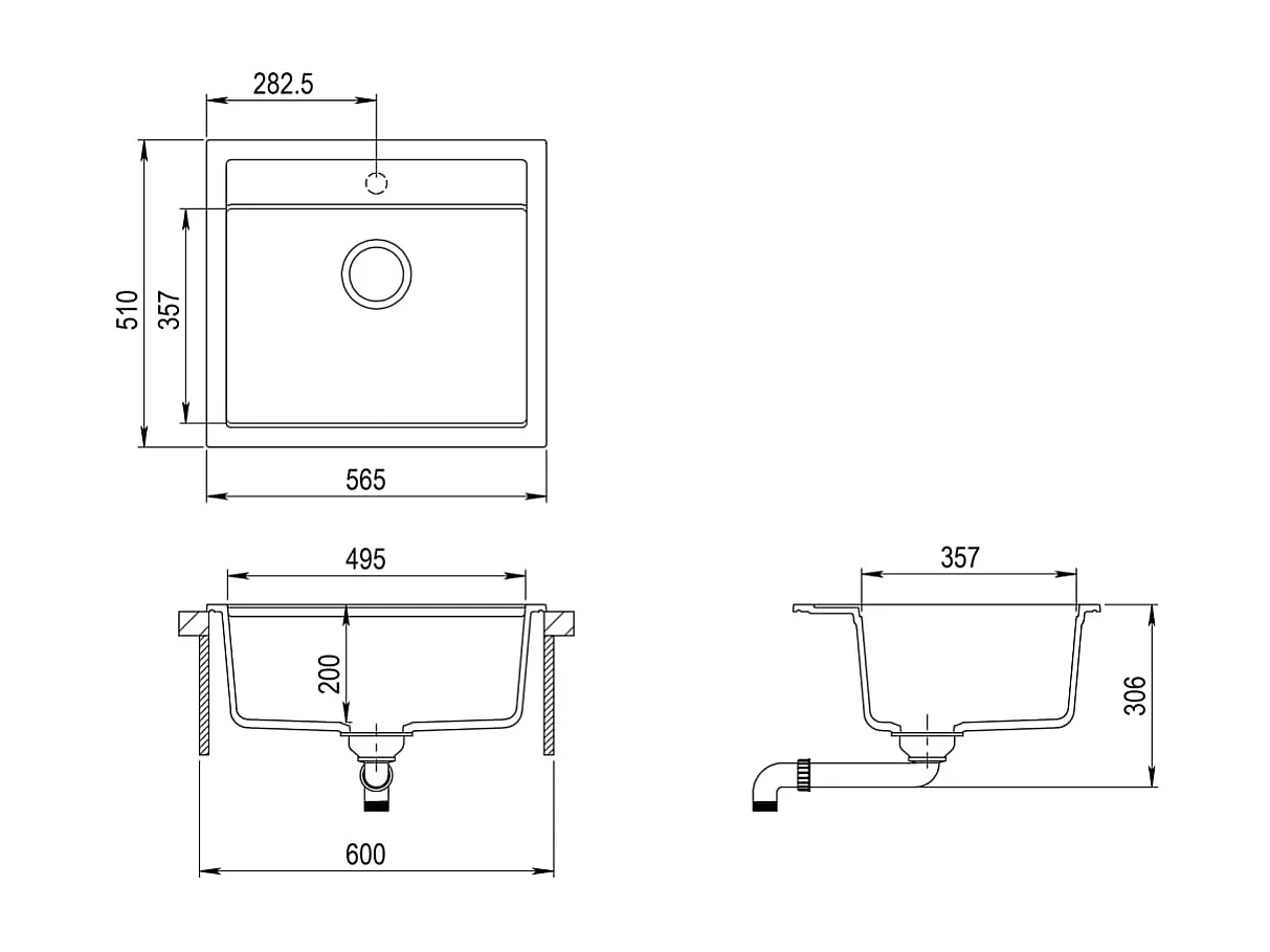 Schwarze Küchenspüle 38 x 44 x 20 cm Granit