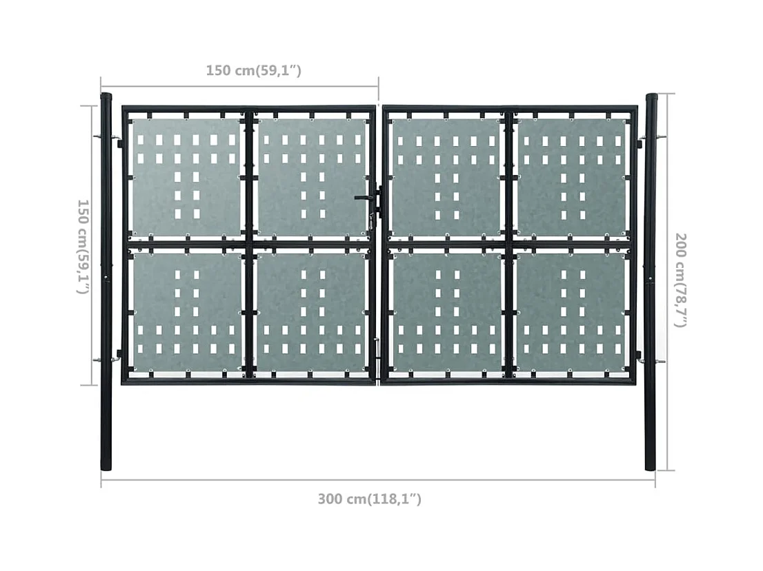 Schwarzes Gartentor 105 x 200 cm, pulverbeschichteter Stahl