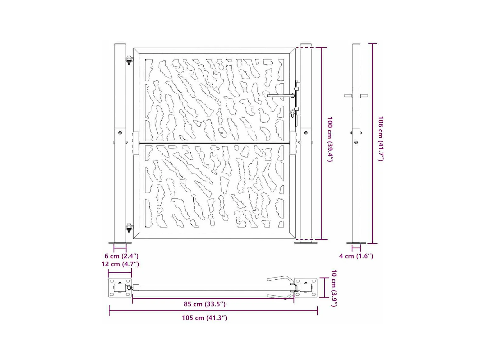 Schwarzes Gartentor 105x106 cm Stahl Liniendesign