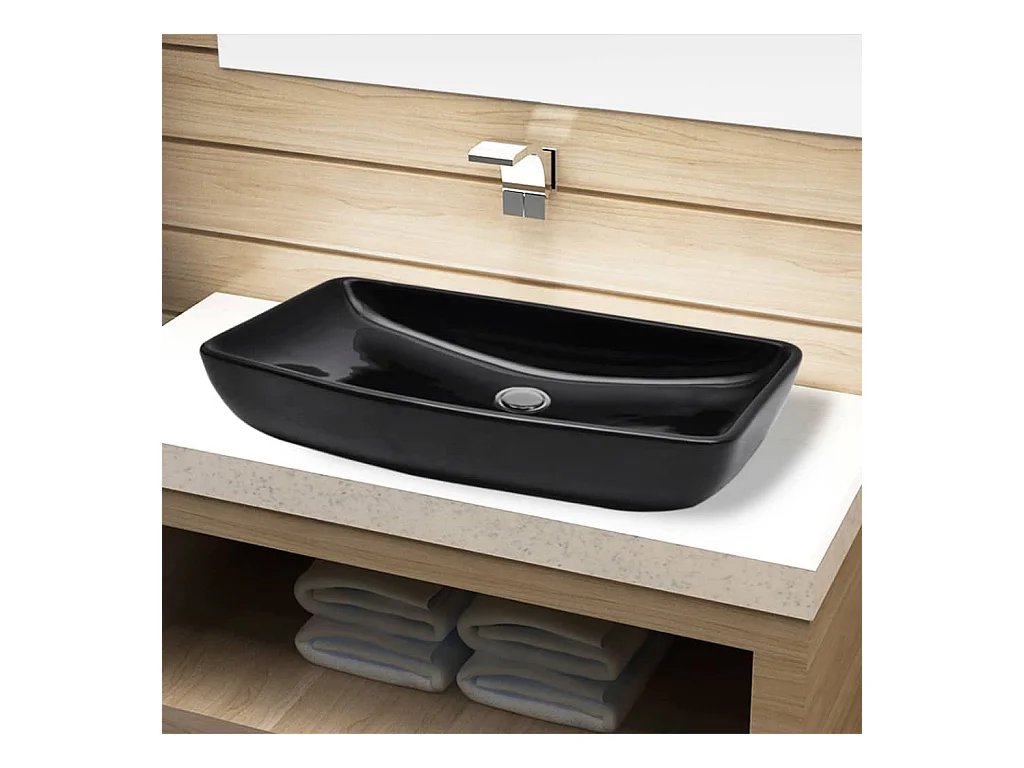 Schwarzes rechteckiges Keramikwaschbecken für Badezimmer