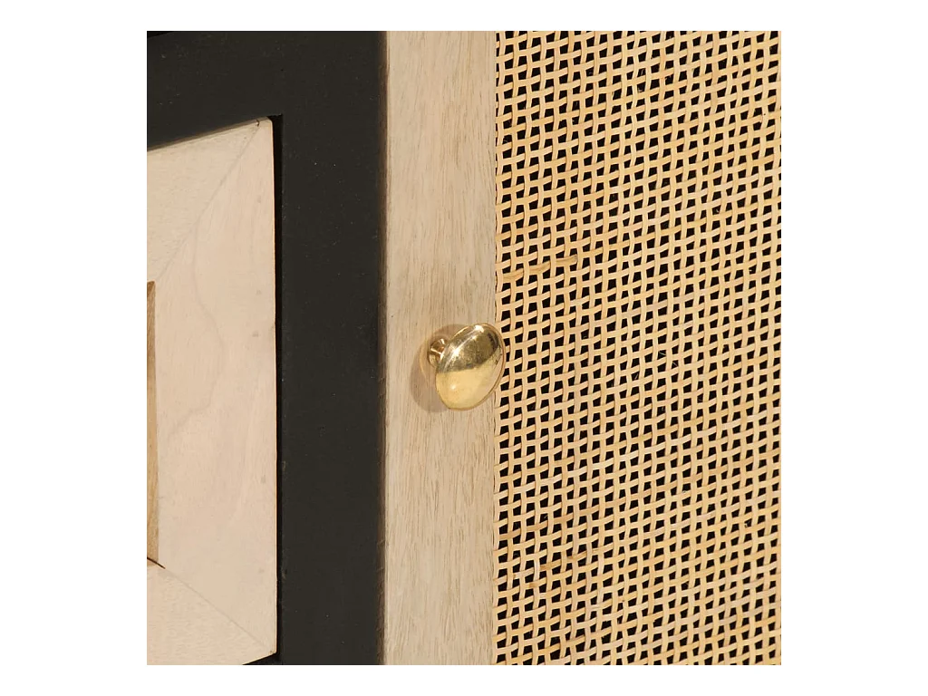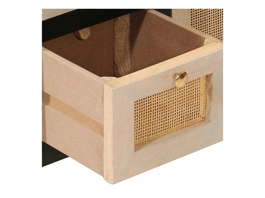 Schwarzes Sideboard 55x30x76 cm aus massivem Mangoholz und Eisen