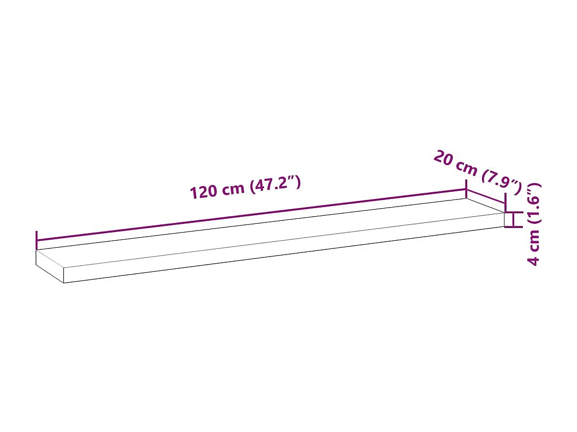 Schweberegal 120x20x4 cm Massivholz Akazie Unbehandelt