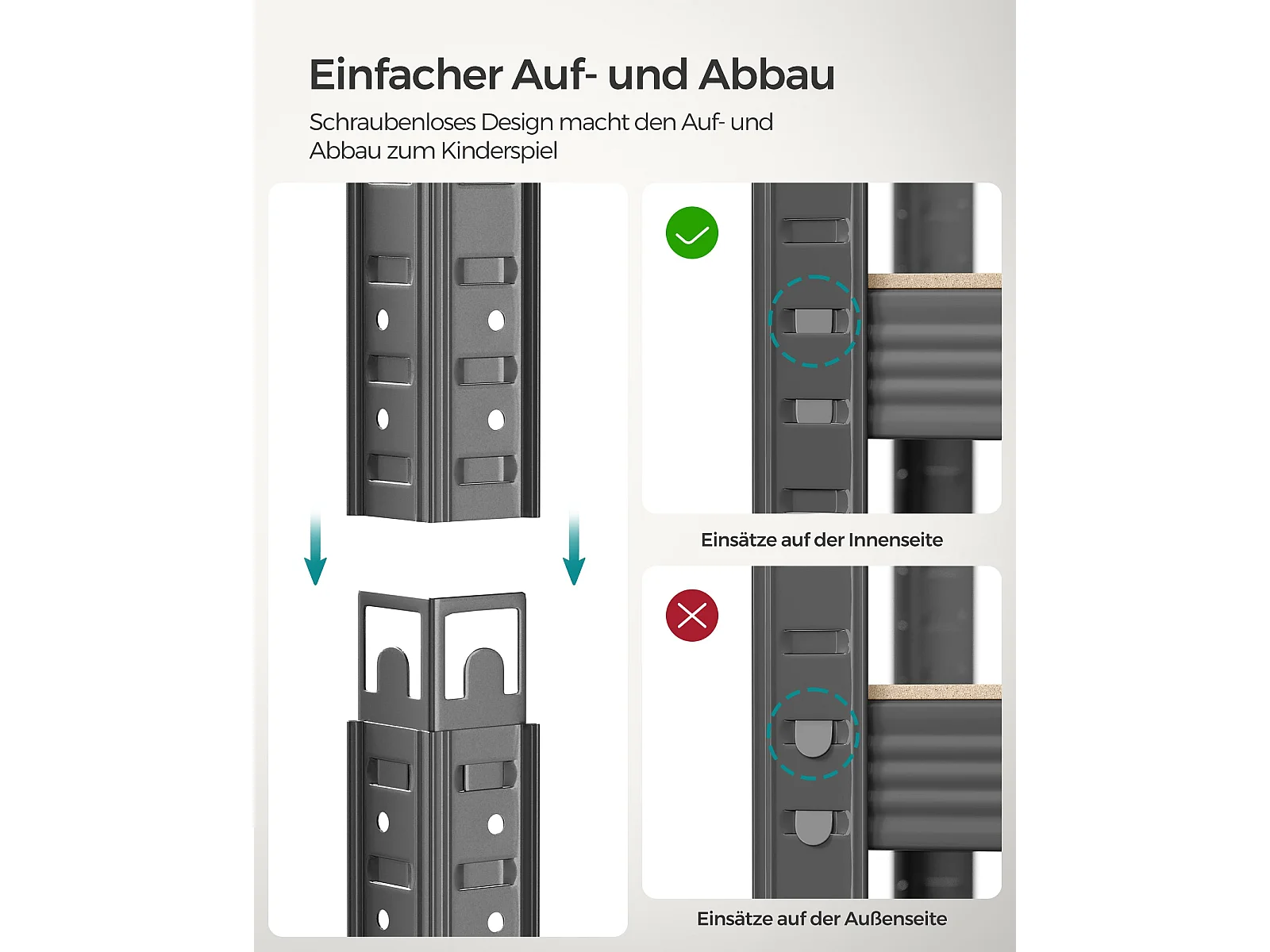 Aufbewahrungsregal mit 4 Stoffkörben Stahl Grau