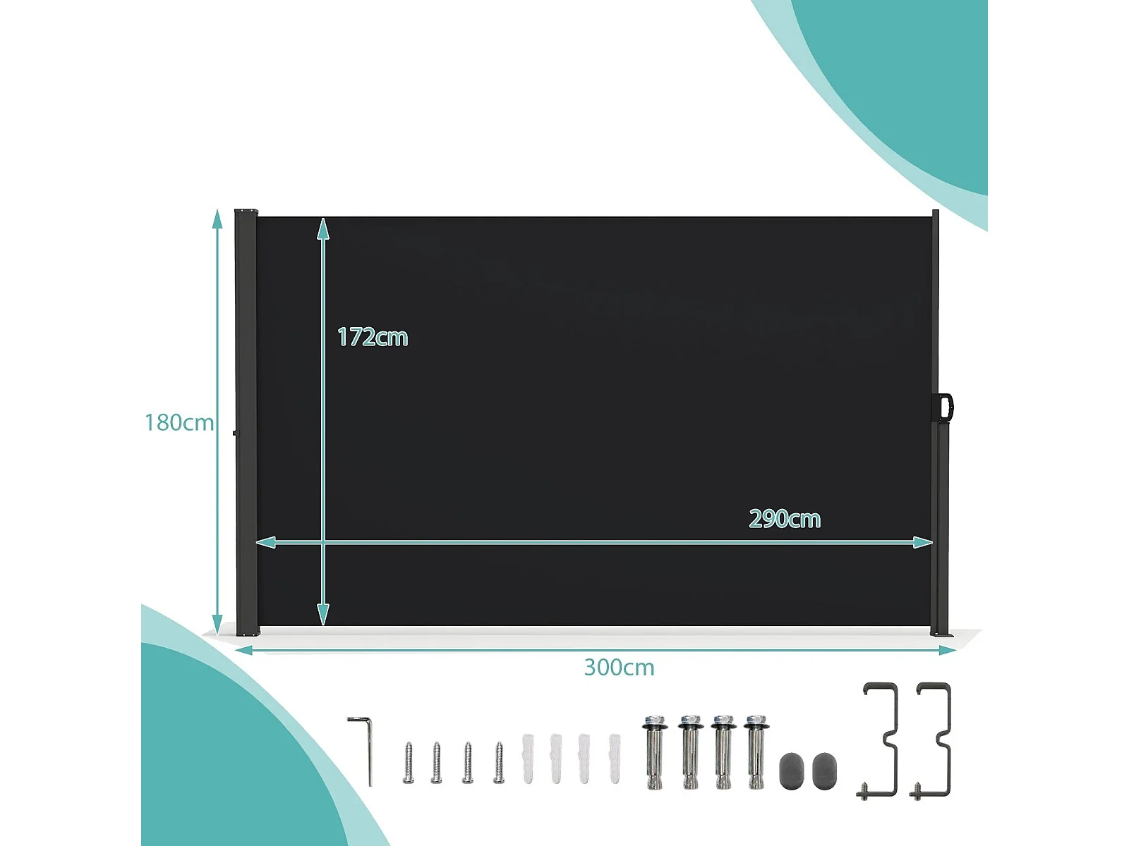 Seitenmarkise Garten Sichtschutz Ausziehbar aus Aluminium mit seitlichem Griff 180 x 300 cm