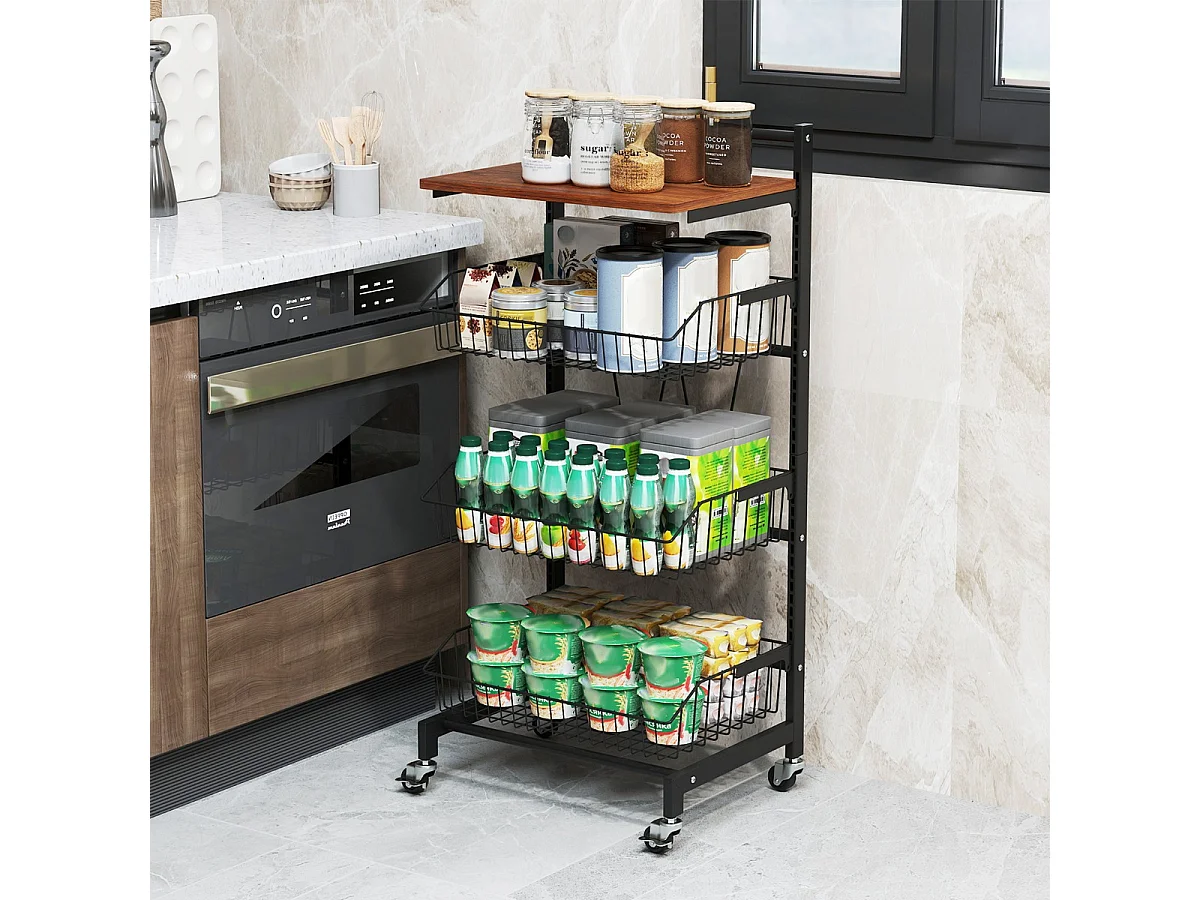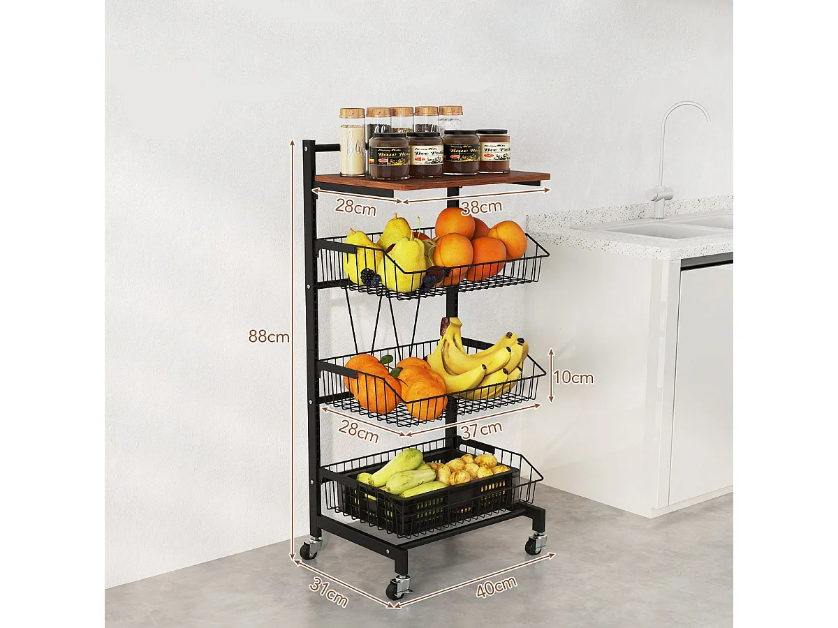 Servierwagen mit Rollen Gemüseregal mit ausziehbaren Körben 40 x 31 x 88 cm