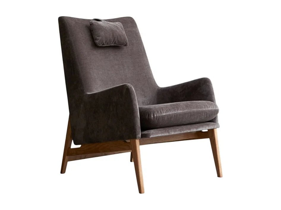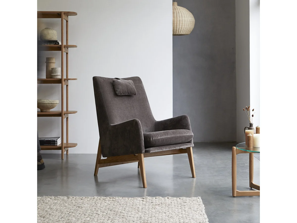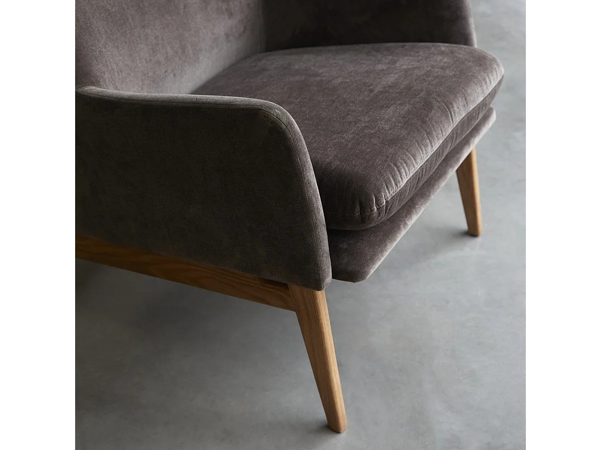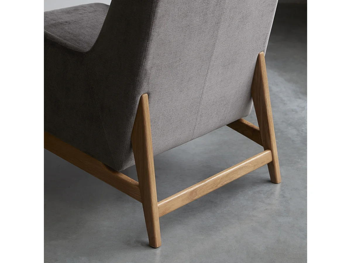 Sessel aus massivem Eichenholz mit grauem Samtbezug
