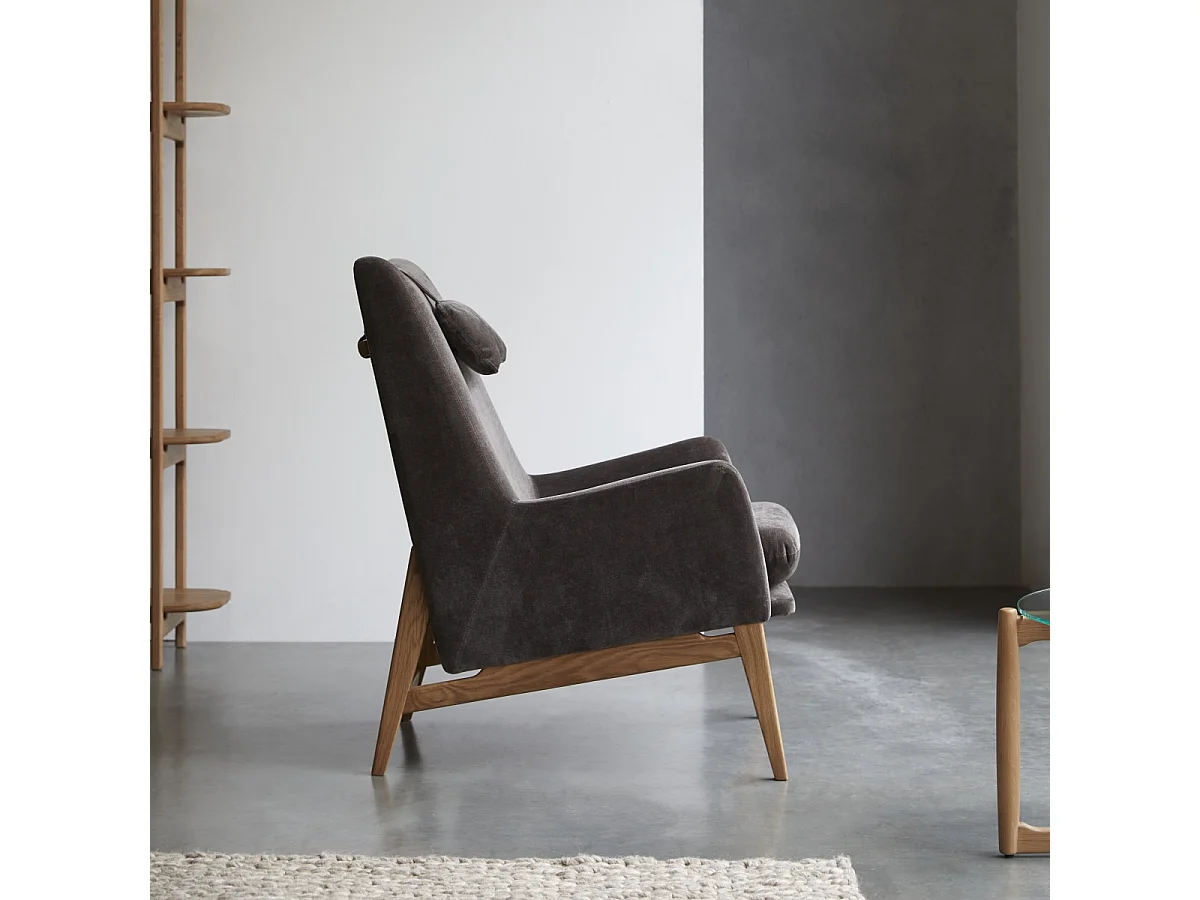 Sessel Hoya mit massivem Eichenholzgestell und grauem Stoffbezug ,1-Sitz