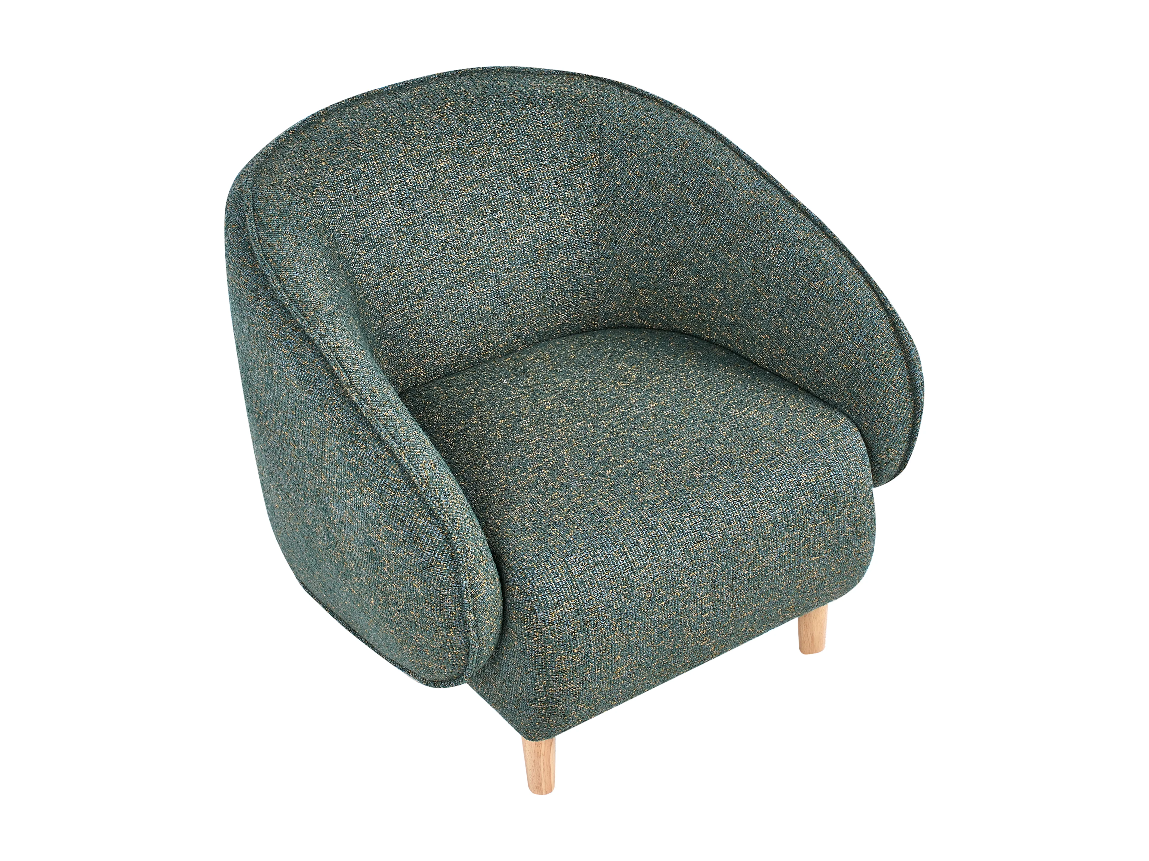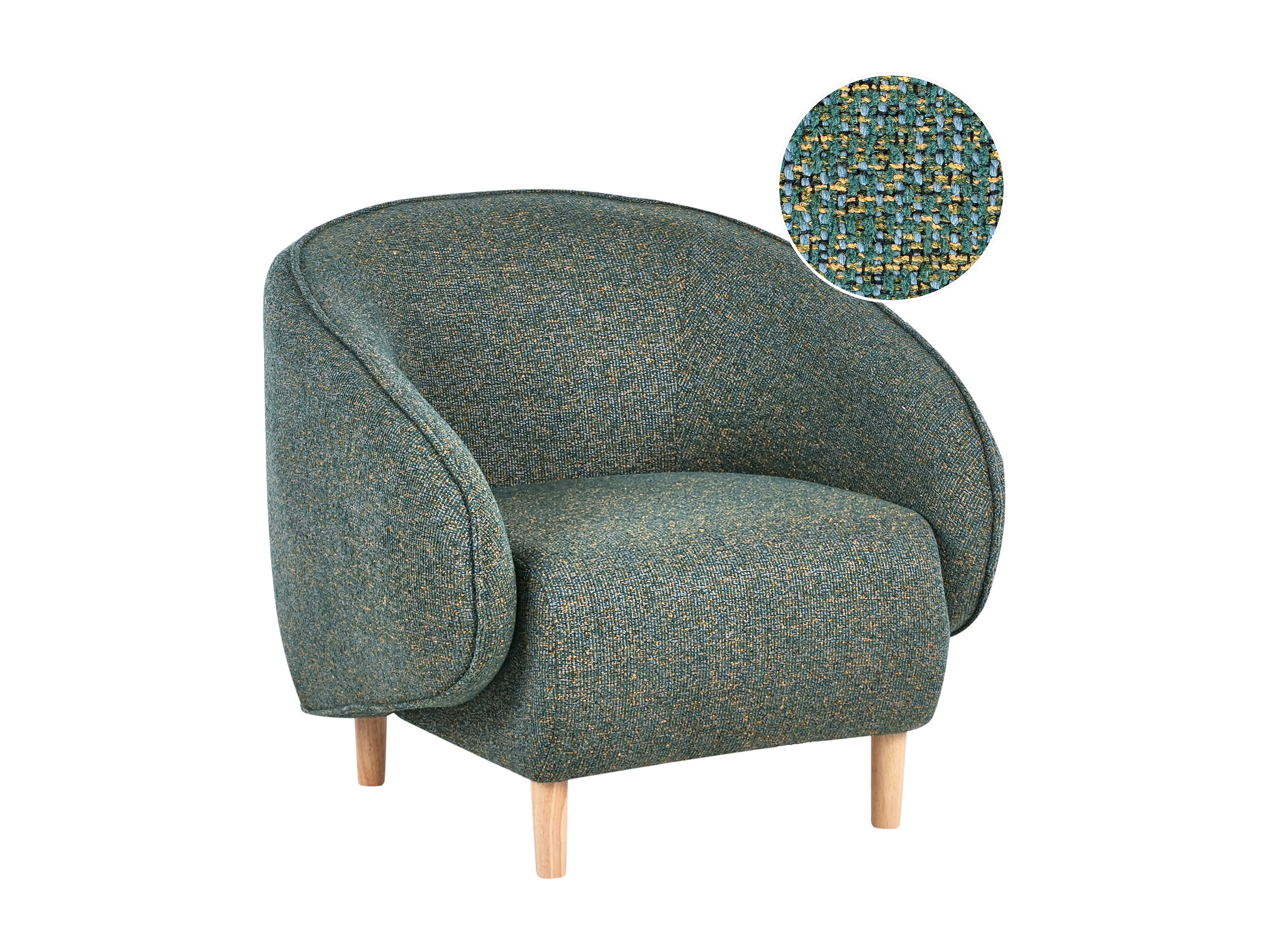 Sessel grün meliert mit abgerundeter Lehne helle Holzbeine Retro Umea